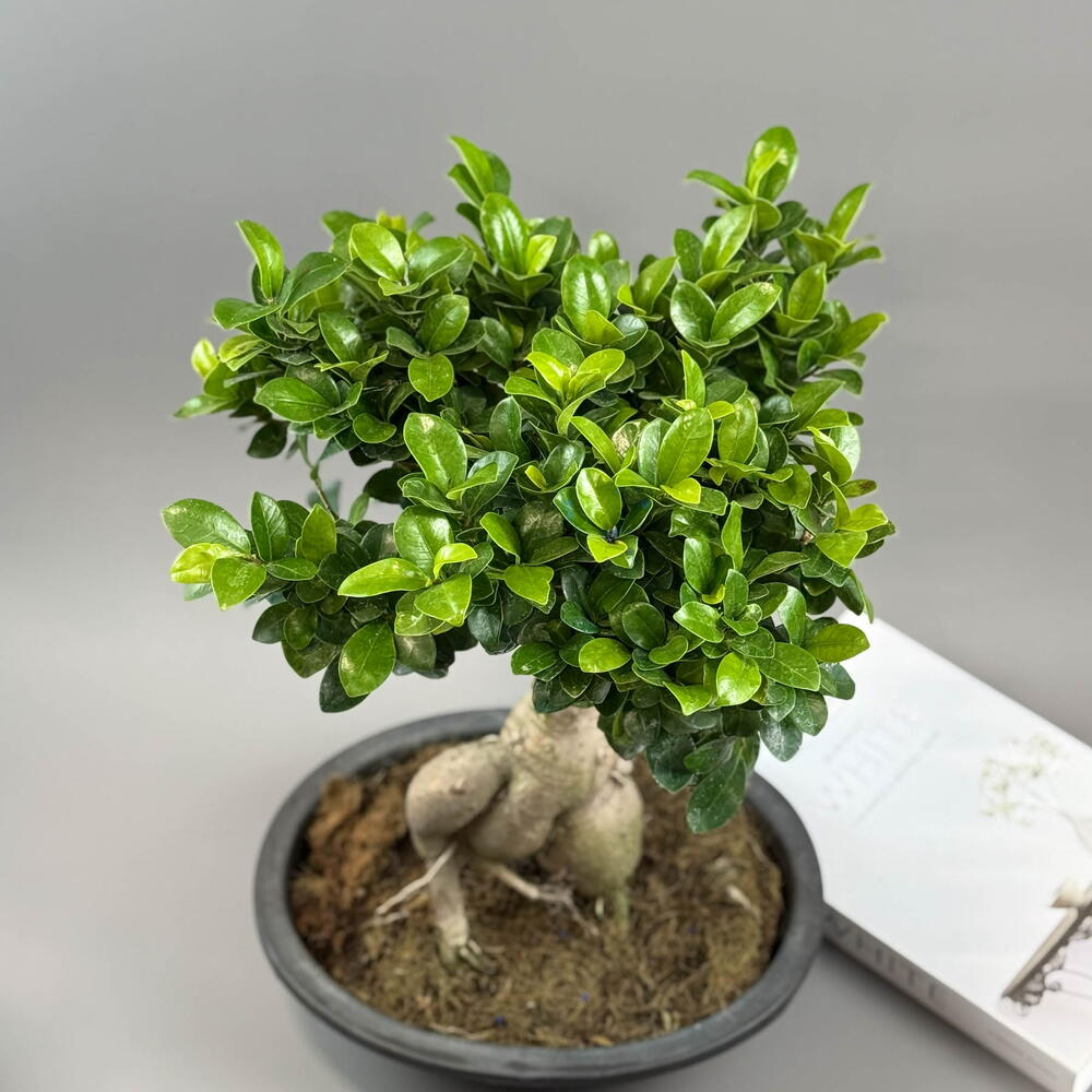 Фикус микрокарпа «Гинсенг» — эффектное комнатное растение с утолщённым декоративным корневым стволом и компактной кроной из мелких глянцевых листьев. Характерная форма корней делает каждое растение уникальным и придаёт ему вид миниатюрного дерева или бонсай. Фикус «Гинсенг» ценится не только за необычный внешний вид, но и за неприхотливость. Он хорошо адаптируется к условиям квартиры, подходит для дома и офиса и не требует сложного ухода. В символике фэншуй считается растением стабильности, достатка и жизненной силы, поэтому его часто выбирают как интерьерный акцент или подарок с смыслом.