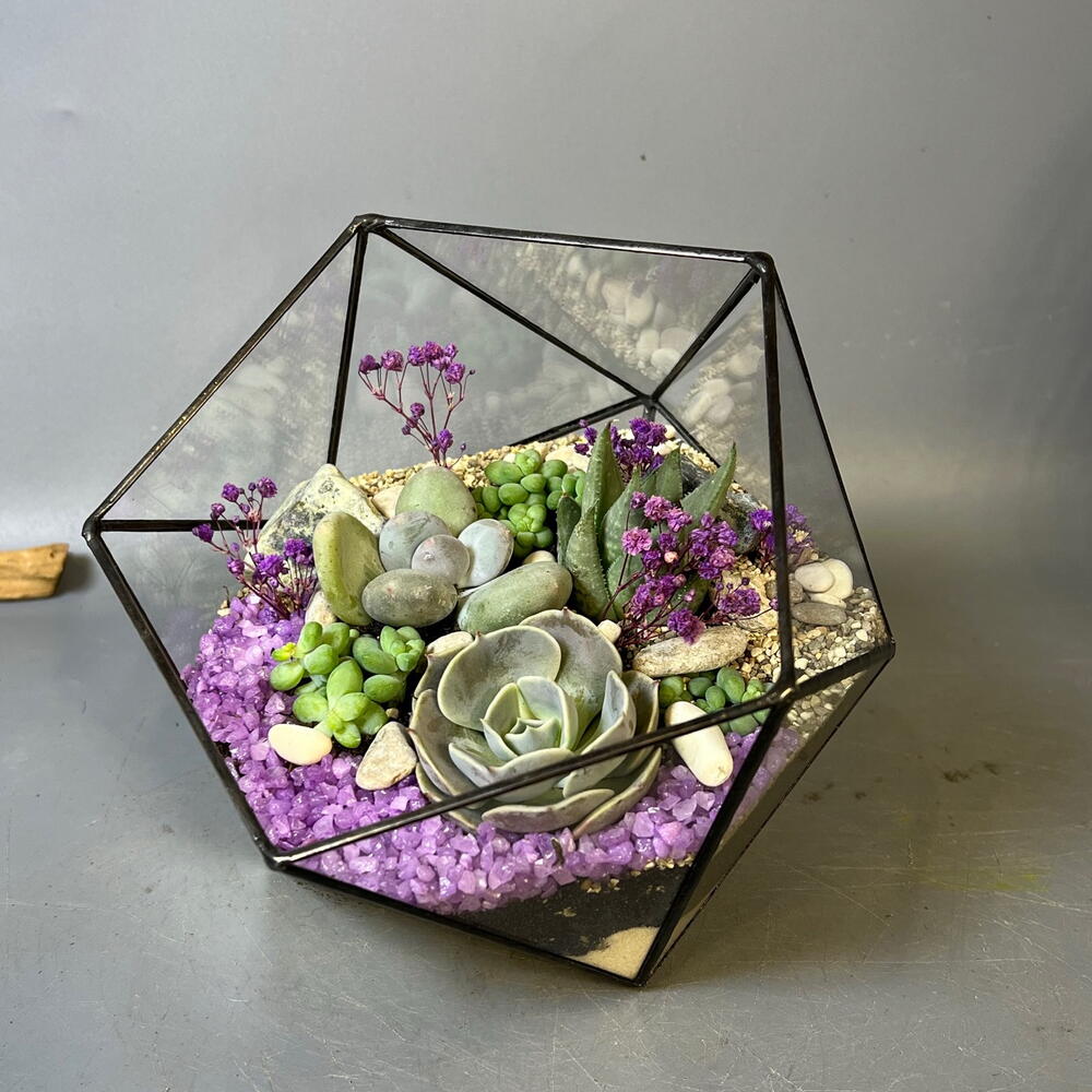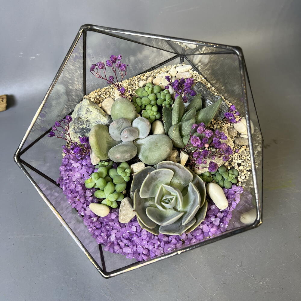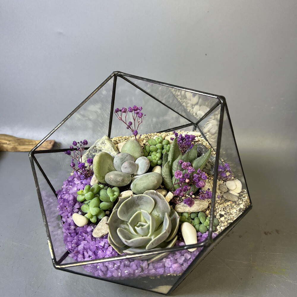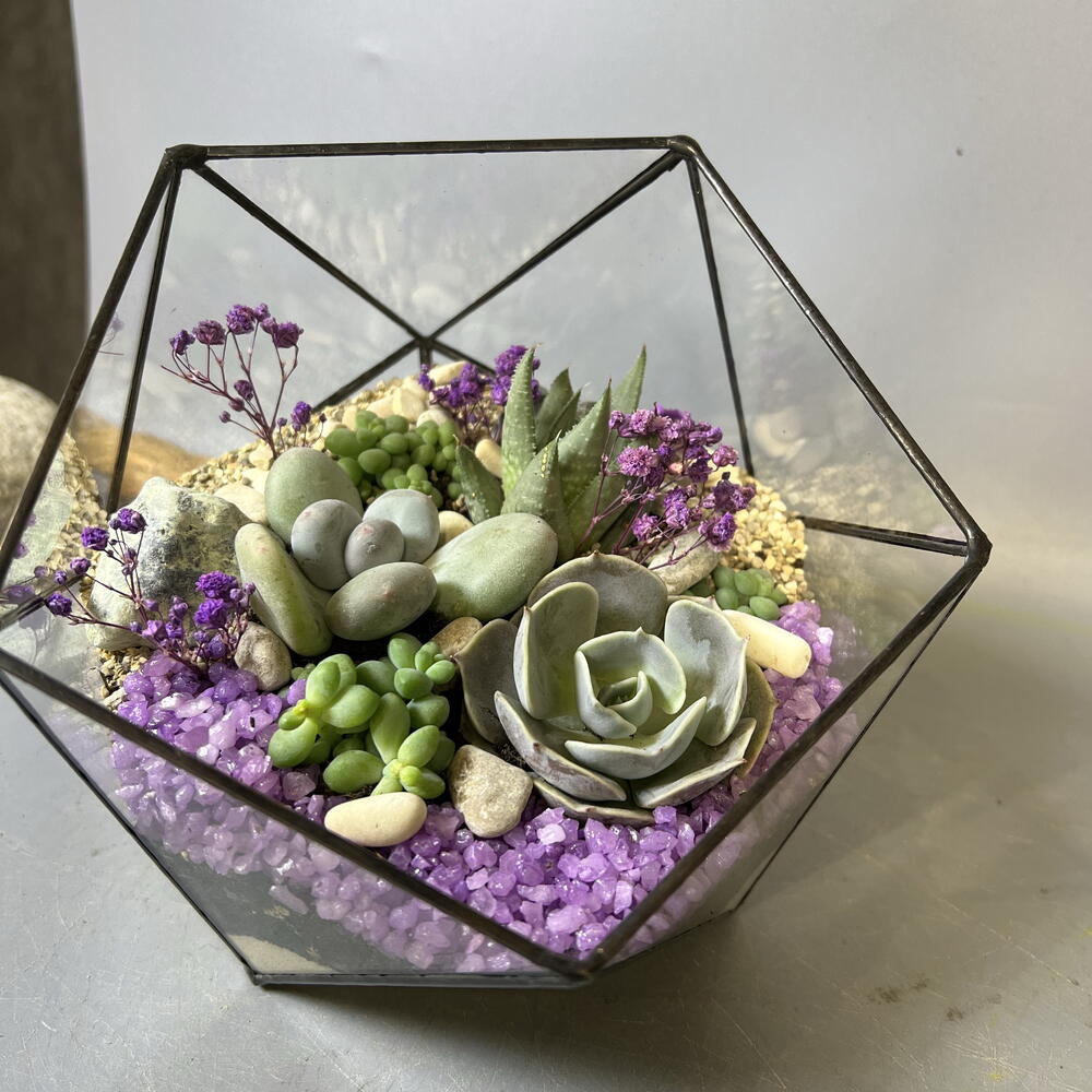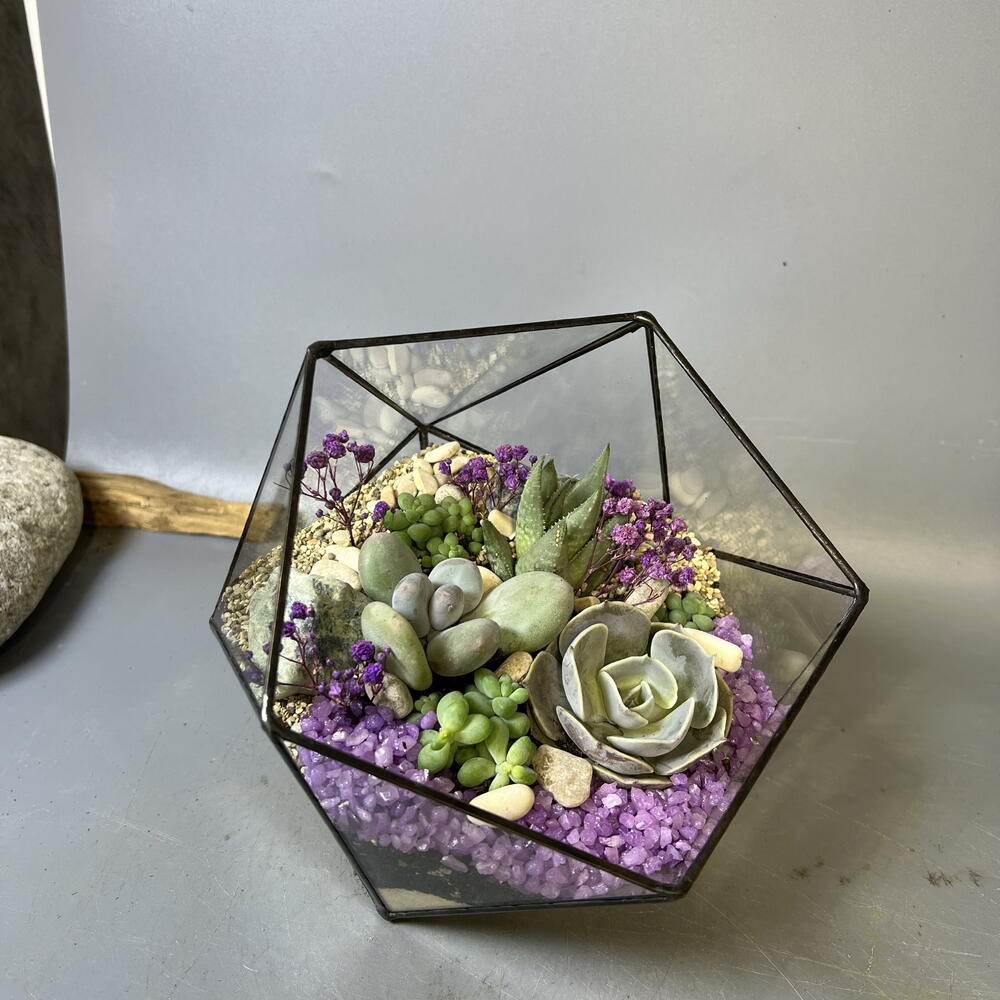 Нежный флорариум в фиолетовых оттенках с суккулентами 💜 Инструкция по уходу прилагается. Редкий полив, примерно раз в 2-3 недели. Отличный подарок, который будет радовать гараздо дольше букета