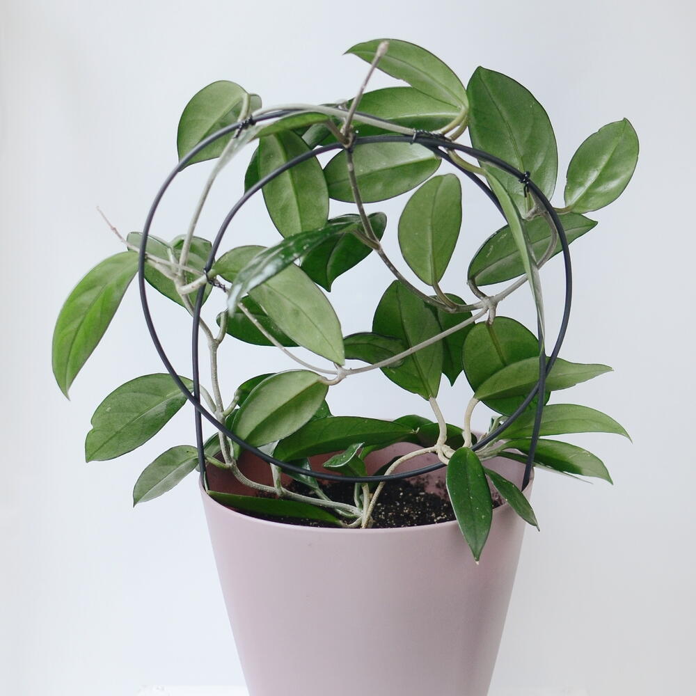 Хойя или же восковый плющ – комнатное декоративное растение со стелющимися или вьющимися побегами. Растение пересажено, новая пересадка потребуется не ранее, чем через год. Горшок диаметром 20 см, опора в комплекте.