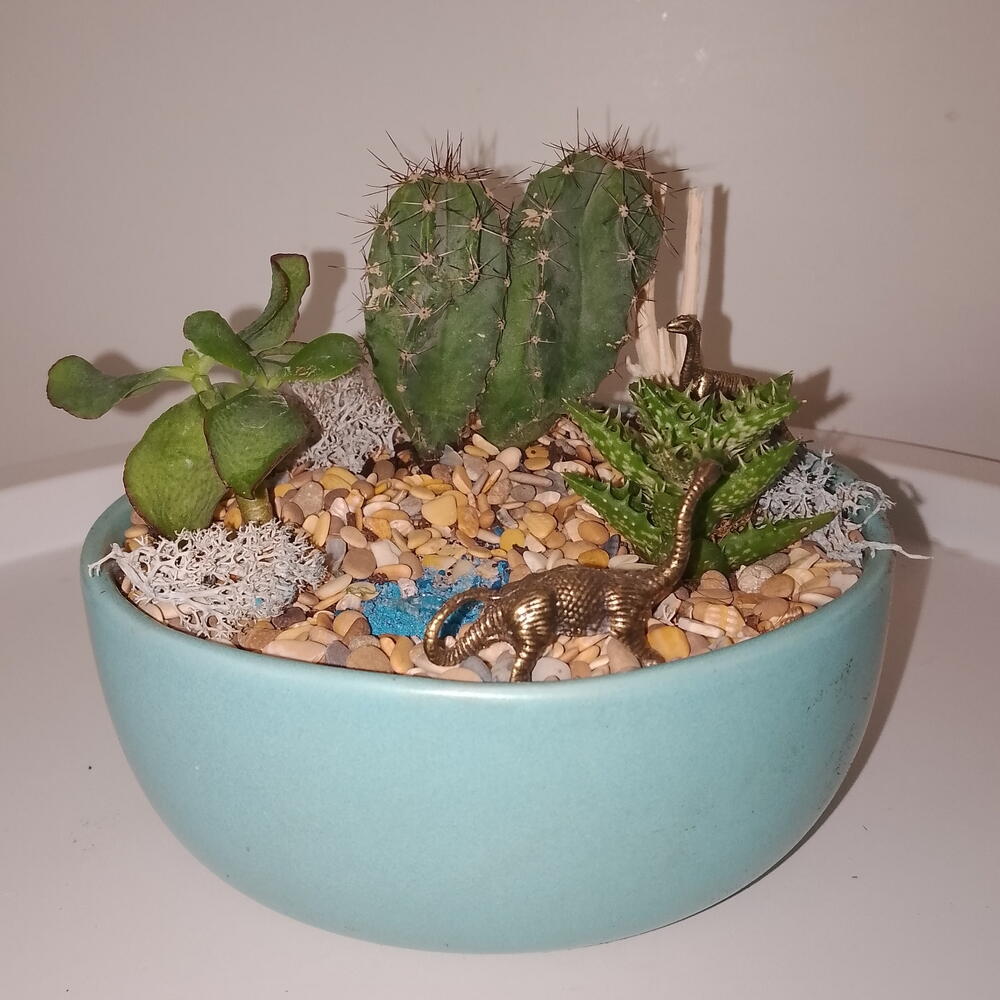 Кактусы в кашпо с динозаврами