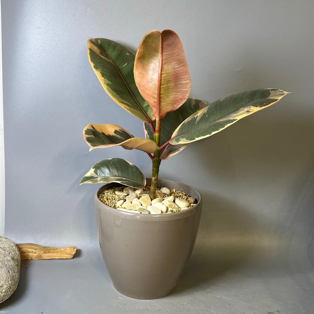 Шикарное растение Фикус эластика Белиз имеет гладкие, глянцевые и пестрые листья. Украсит интерьер и будет радовать ярким цветом. Подойдет в подарок семье, друзьям или коллегам Пересажен в рыхлый замешанный грунт. Горшок с двойным дном. При необходимости лишнюю воду можно будет вылить