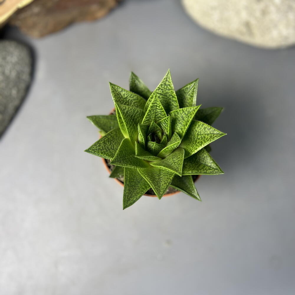Шикарная Гастерия диаметром 10 см. Мясистые листья покрыты белыми пятнами и полосами, напоминающими тигровый окрас. Предпочитает яркий рассеянный свет, но переносит и легкую полутень. Желательно пересадить в рыхлый грунт, можно найти у нас в доп товарах Отличный подарок для любителя растений или начинающего цветовода