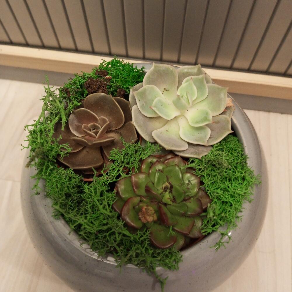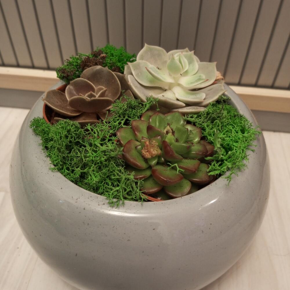 Композиция с Суккулентами микс в сером кашпо подарочный