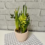 Уход за композицией в горшке включает обеспечение прохлады (+18...+22 °C), яркого рассеянного света и умеренного полива под корень, не допуская застоя влаги. Важно избегать сквозняков и попадания воды на луковицы. Цветение длится около 2-3 недель, после чего растение переходит в стадию покоя. Чего нельзя делать: - Опрыскивать листья и цветы. - Поливать прямо на луковицу (это вызывает гниение). - Держать в сильной жаре (цветение закончится быстрее).
