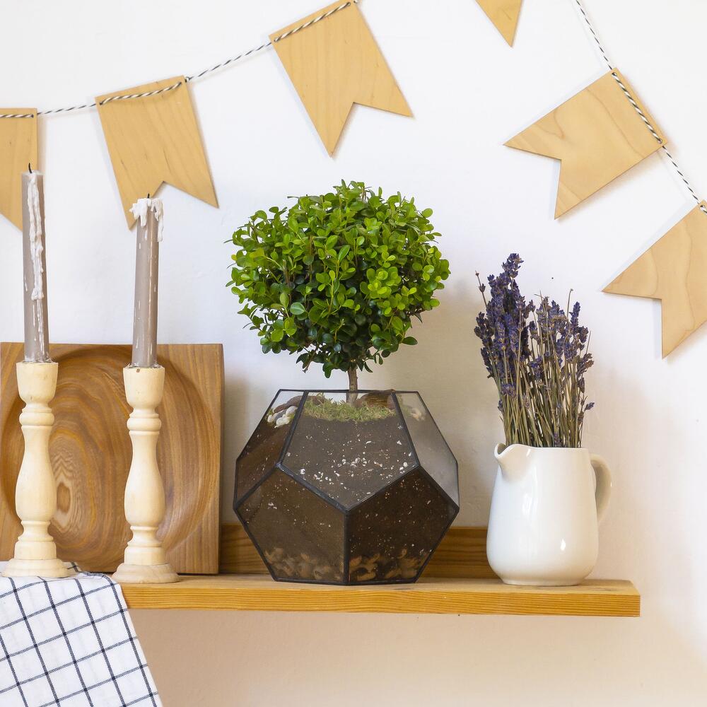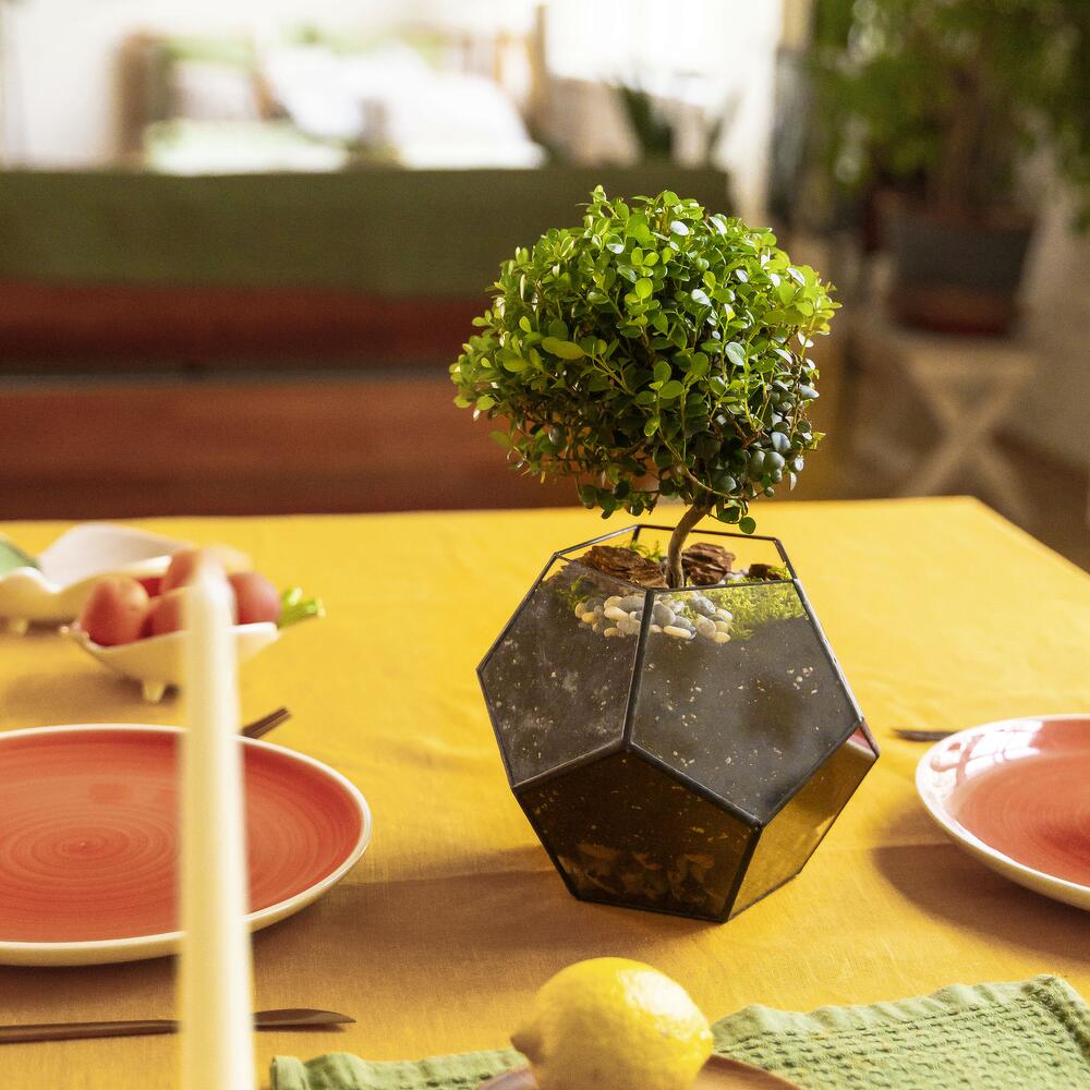 Мирт комнатный , мирсина в стеклянном кашпо додекаэдр