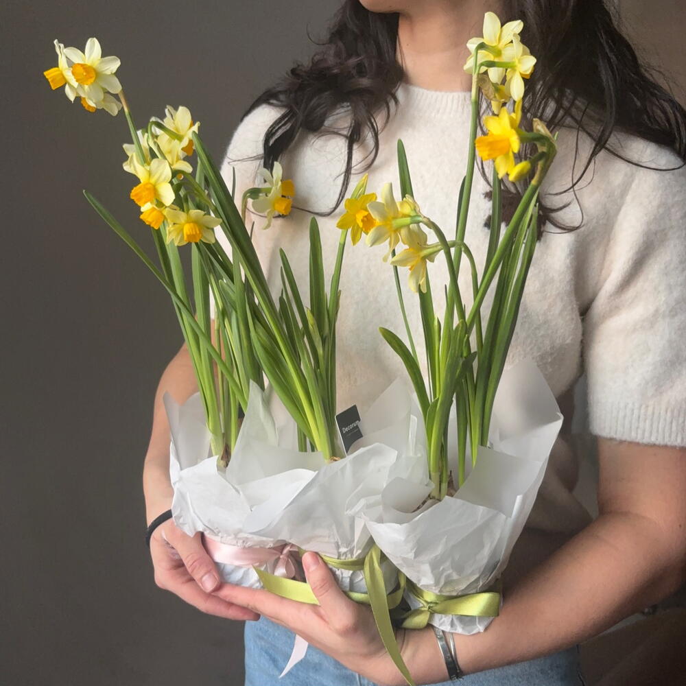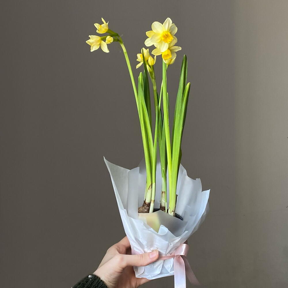 Горшочек с весной — Нарциссы Когда солнца всё ещё не хватает, мы приносим его сами 🌼 Яркие нарциссы в горшочке — про весну, которая начинается тихо, но уверенно. Он будет расцветать и меняться прямо у вас дома, радуя глаз до трёх недель — маленькое напоминание, что свет уже совсем близко.