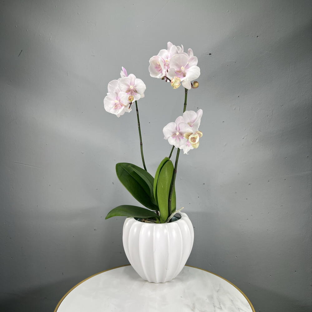 Памятка по уходу для Фаленопсиса (Орхидея-бабочка) Освещение: любит рассеянный свет. Идеальны восточные или западные окна. Может цвести и на северном окне. Полив: Умеренный и особый. Лучший метод — погружение: опустите горшок на 15-20 минут в емкость с мягкой, отстоянной водой комнатной температуры, затем дайте стечь всей лишней воде. Зеленая окраска корней говорит о достаточной влажности. В среднем, 1 раз в 7-10 дней.