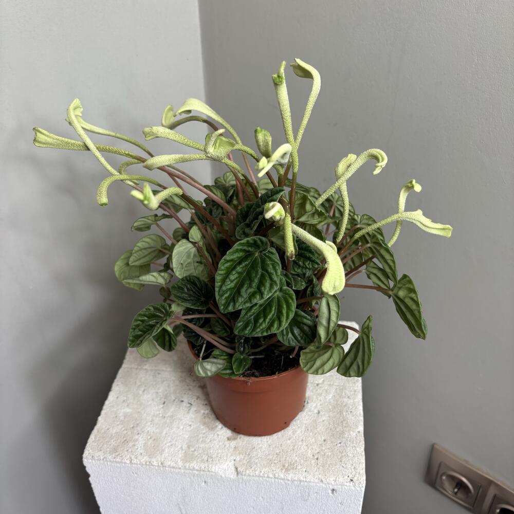 Пеперомия Каперата Лилиан - один из самых популярных видов.Компактный, низкорослый, вечнозеленый кустарник с темно-зелеными листьями, которые имеют сердцевидную, округлую форму с заостренным кончиком и морщинистой структурой.Поверхность листовой пластины испещрена коричневыми жилами на обеих сторонах.