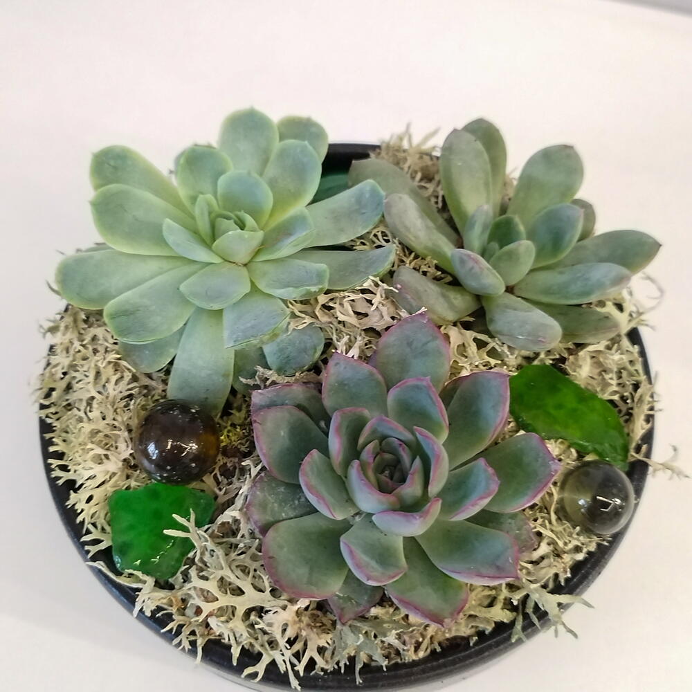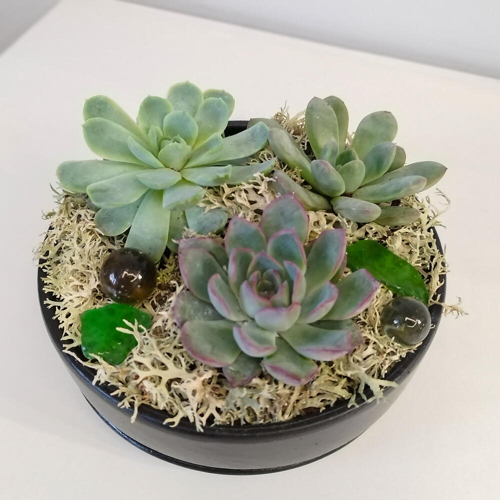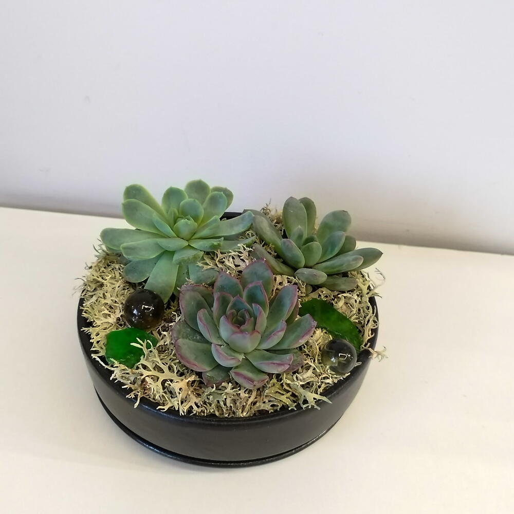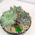 Минималистичная композиция с тремя суккулентами не займёт много места, отлично впишется в интерьер на рабочем месте или в квартире. За композицией не сложно ухаживать - справится даже начинающий любитель домашних растений. Доставим в подарочной упаковке, приложим открытку с Вашими пожеланиями. В холодное время года дополнительно утепляем все растения.