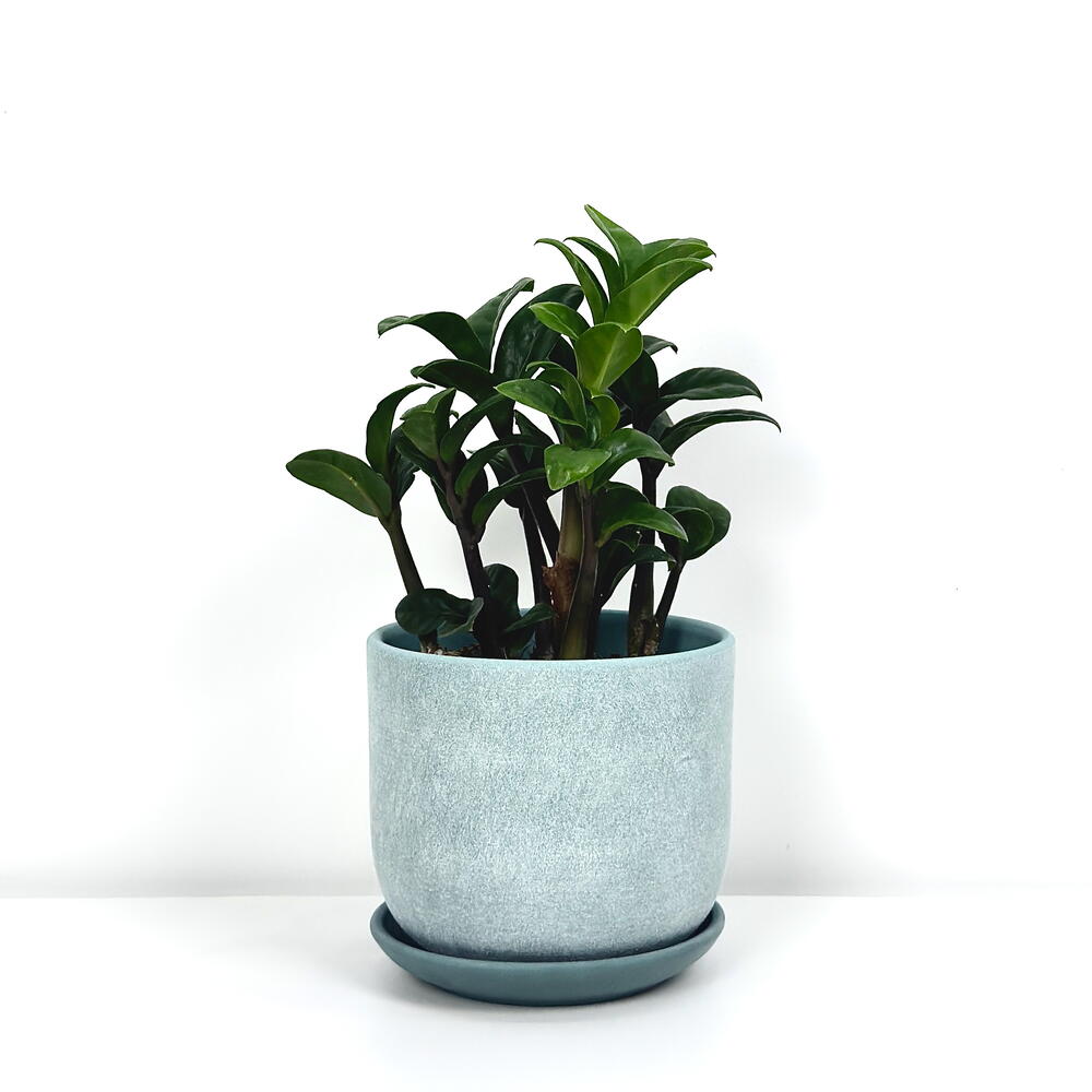 Замиокулькас Зензи в бирюзовом горшке с поддоном D12 Замша, высота 20см