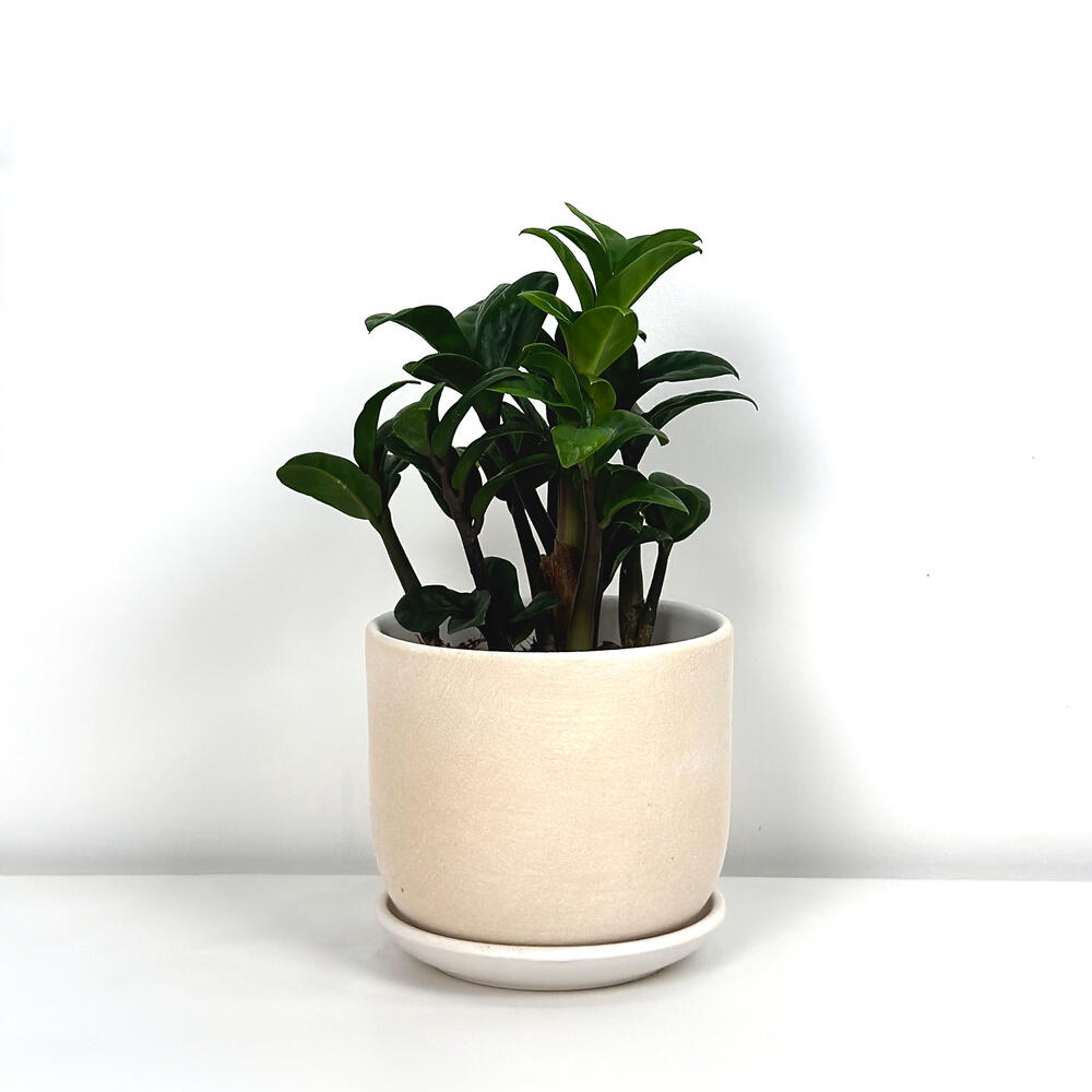 Замиокулькас Зензи в кремовом горшке с поддоном D12 Замша, высота 20см