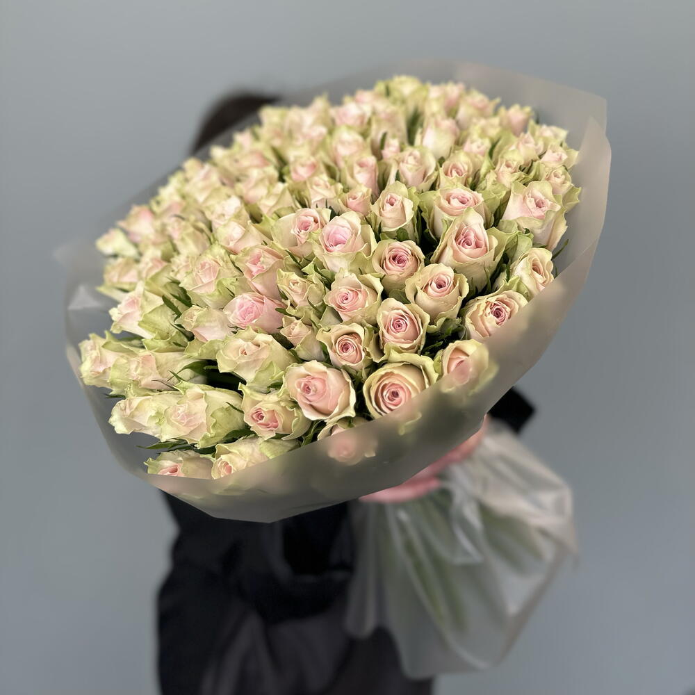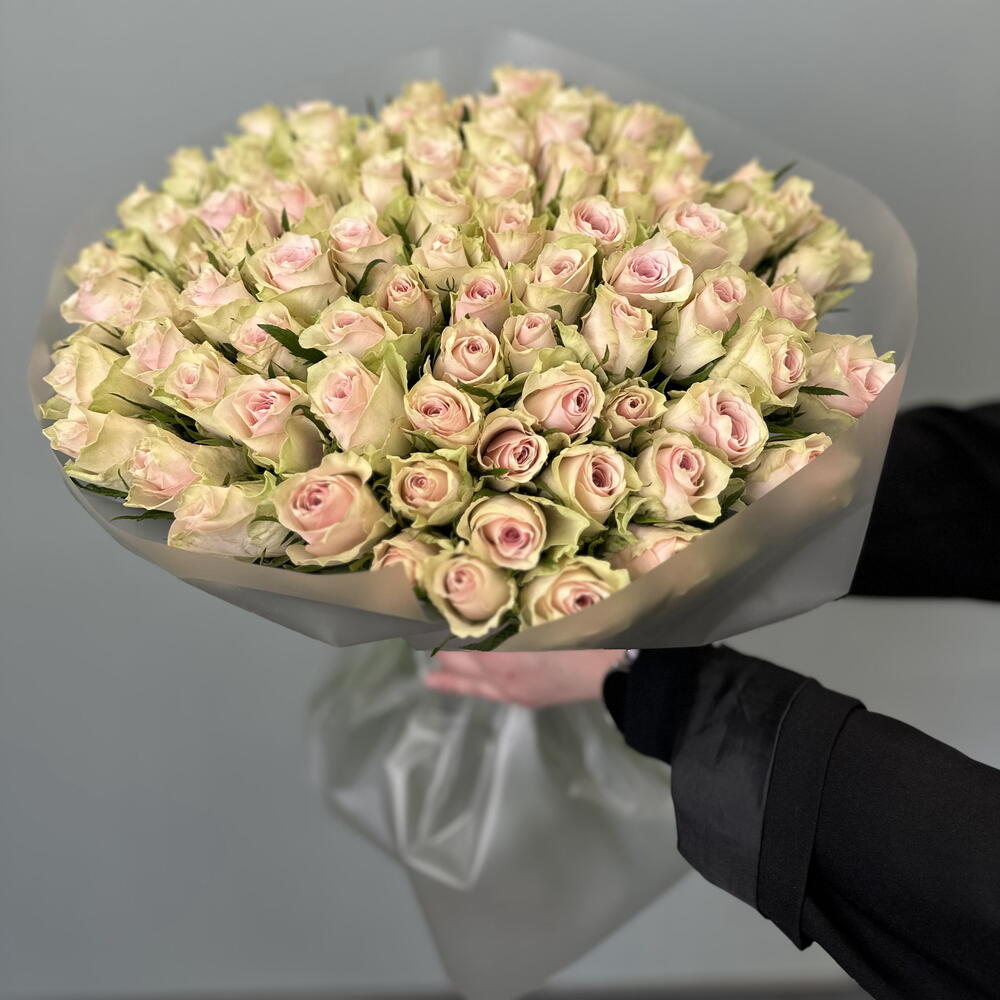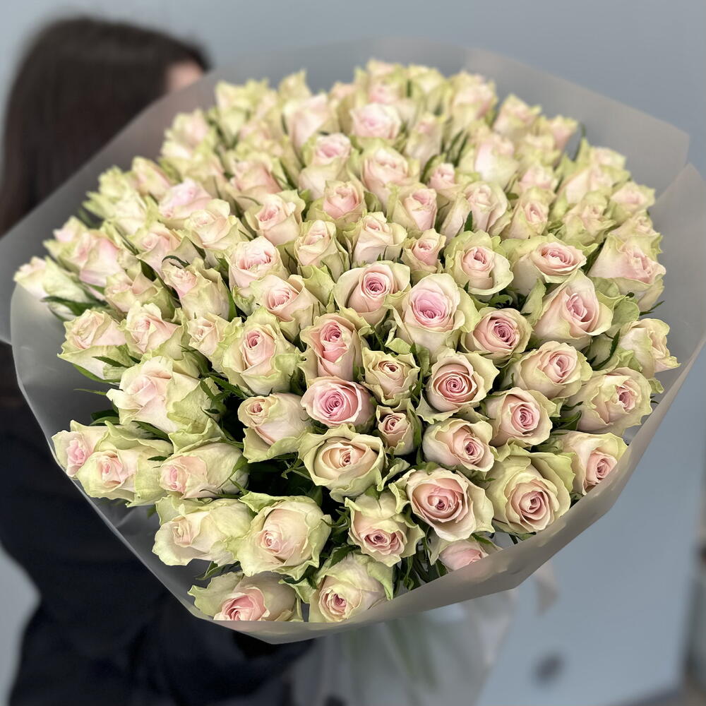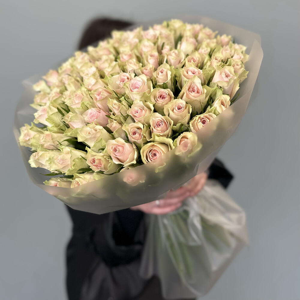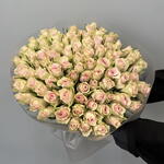 101 Роза это шикарный и прекрасный жест, чтобы порадовать на всевозможные праздник любимого человека. Кремового розовый цвет олицетворяет нежность и романтику, которая так ценна любой девушки. Розы упакованы в прекрасную и красивую бумагу, что подчёркивает роскошь роз.
