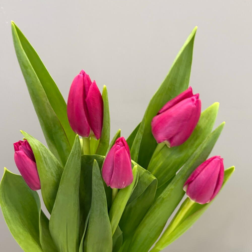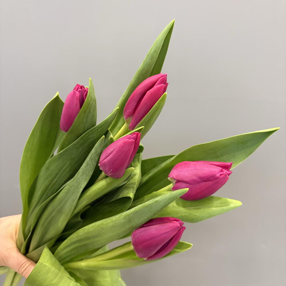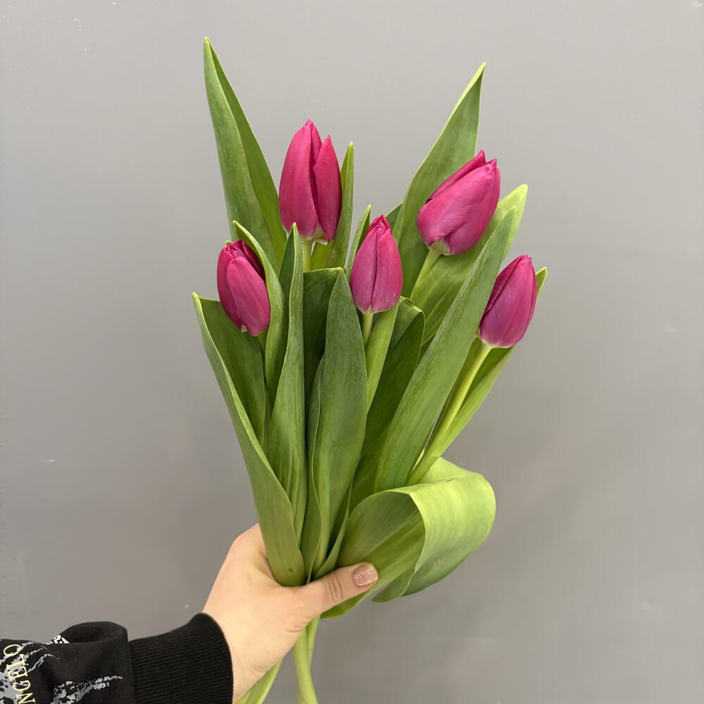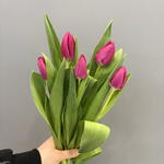 5 фиолетовых тюльпанов под ленту
