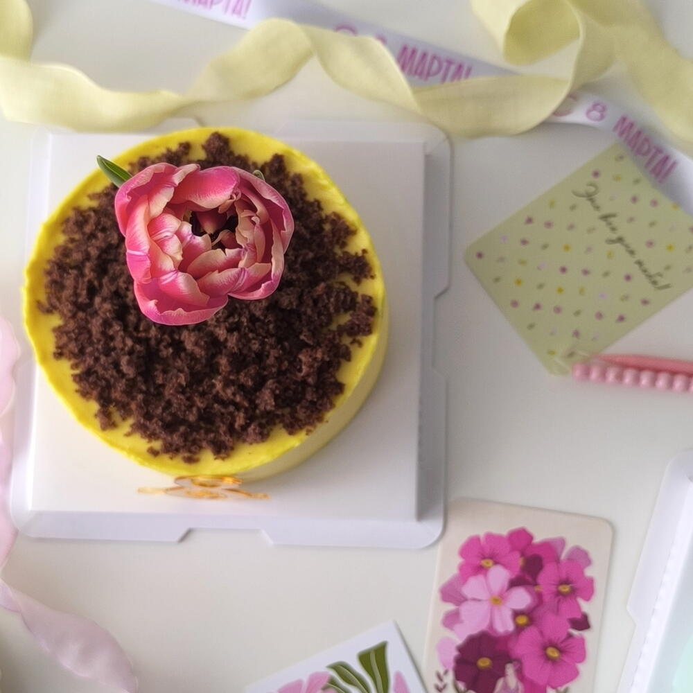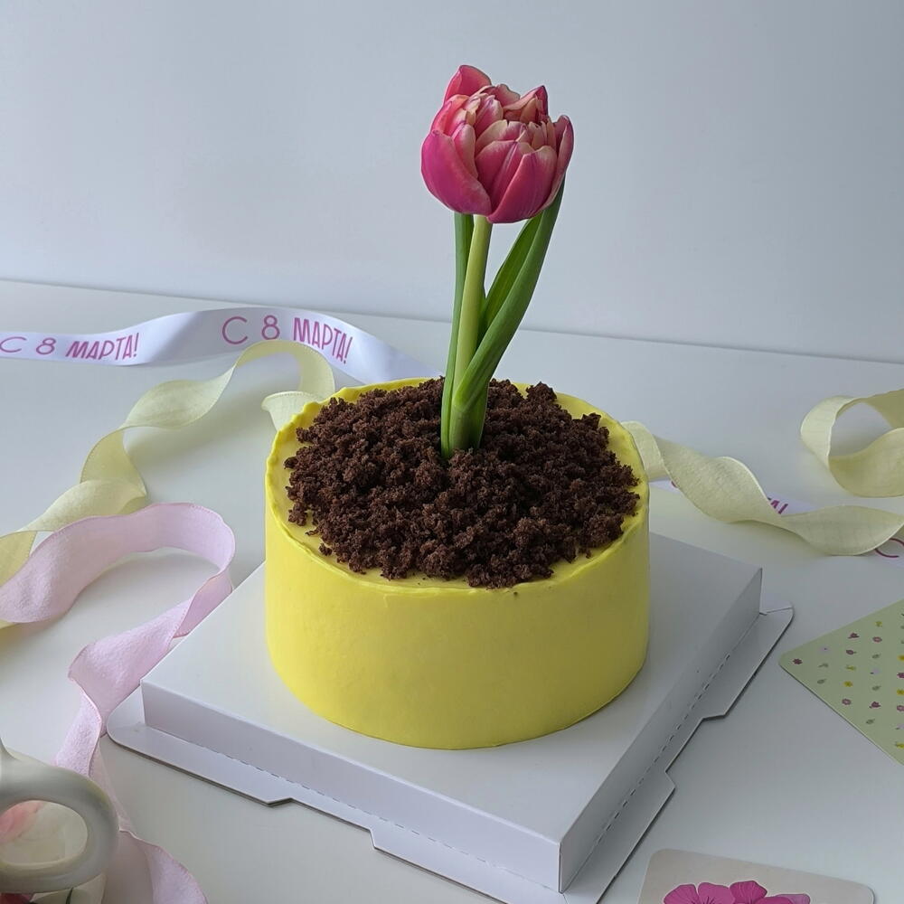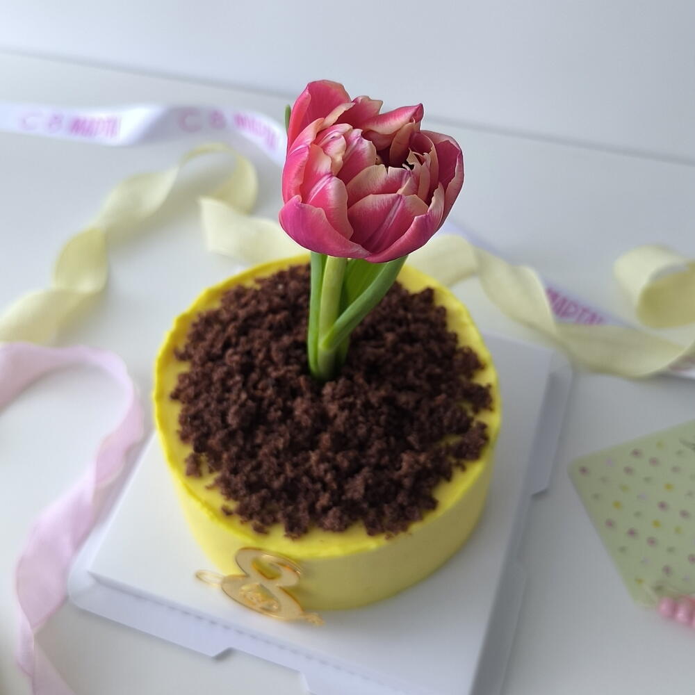 Нежность в каждой детали 🌸🥰 Торт в виде горшочка с живым цветком тюльпана на 8 марта Полноценный подарок который подарит весеннее настроение и останется в памяти надолго! По желанию можно добавить топпер 8 марта (не съедобно) *Возможно исполнение торта в другом цвете *Оттеннок тюльпана может незначительно отличаться Весенняя праздничная упаковка каждого заказа: коробка с прозрачным куполом, атласная лента, конфетти, открытка, ложечка, мини шарик в форме сердца и всё это в бумажном пакете (не крафт!)