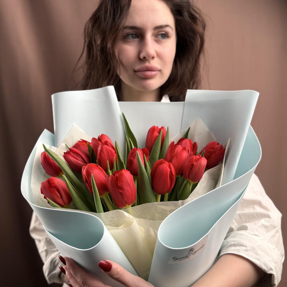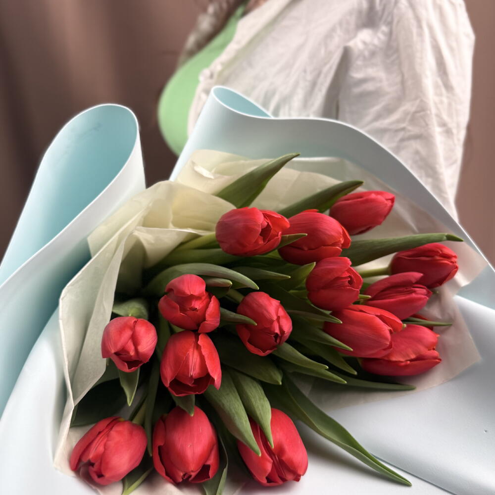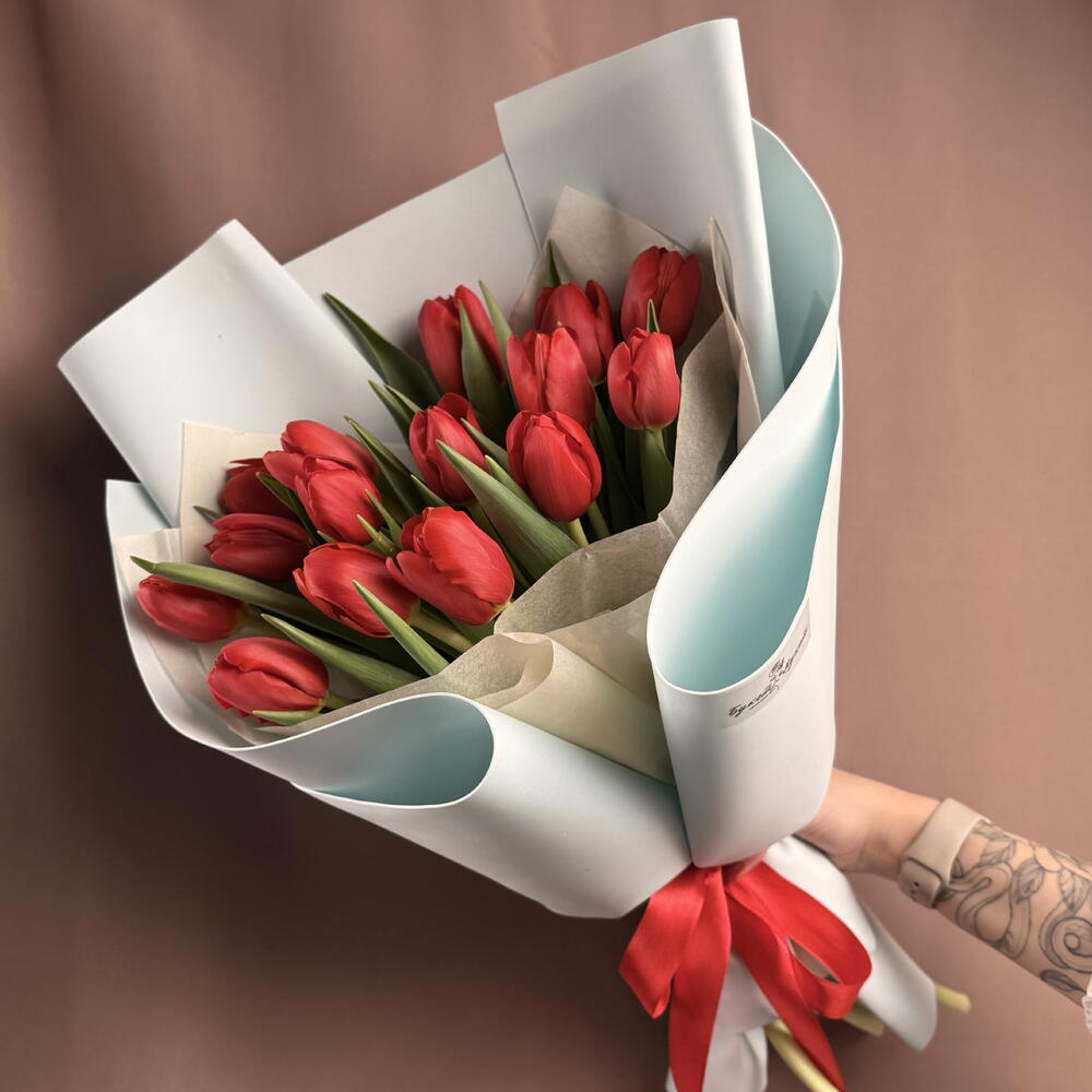 Тюльпан - 15 шт. Лента атласная - 1 шт. Тишью - 2 шт. Фоамиран (упаковка) - 3 шт.