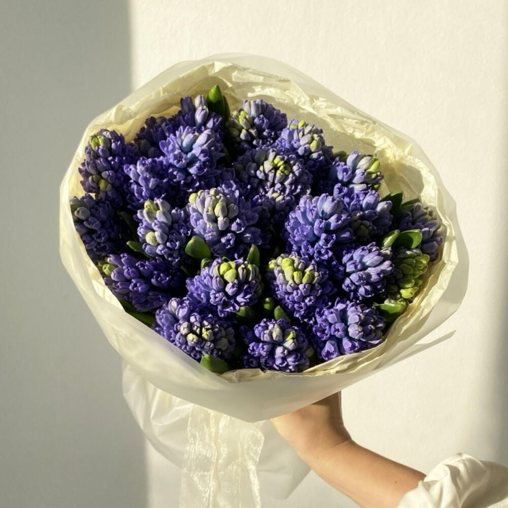 Букет из 25 гиацинтов — пышная и эффектная композиция с густыми соцветиями, создающими яркий весенний акцент. Разнообразие оттенков придаёт букету глубину и торжественность, а сладкий нежный аромат наполняет помещение уютом и радостью. Мы тщательно отбираем каждый цветок, аккуратно оформляем букет и обеспечиваем быструю доставку, чтобы он радовал свежестью и красотой как можно дольше.
