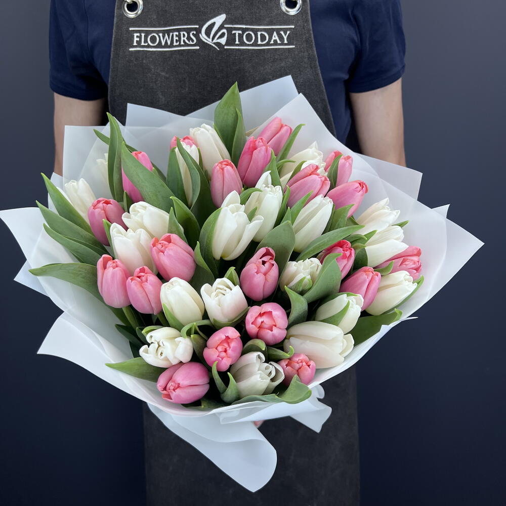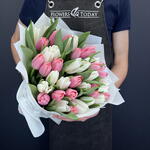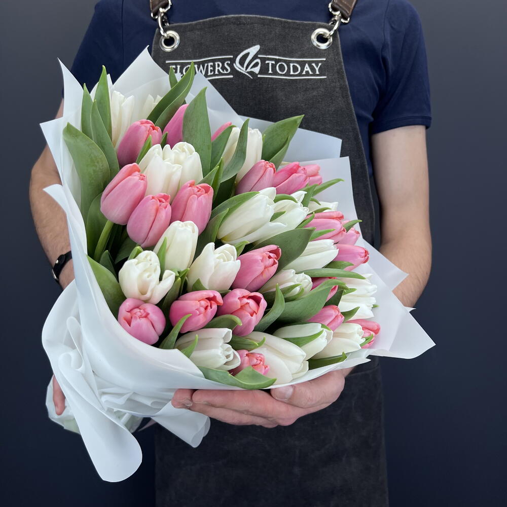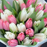Букет из 39 белых и розовых тюльпанов
