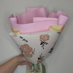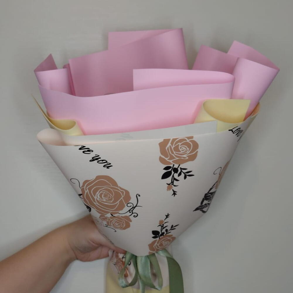 Лента атласная - 1 шт. Фоамиран - 2 шт. бант атласный двойной - 1 шт. пленка флористическая - 2 шт. саусеп - 40 гр. роза из фоамирана - 1 шт. королевский десерт (черный чай) - 40 гр. тутти фрутти - 40 гр.