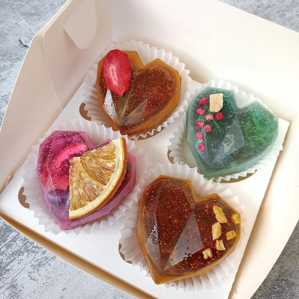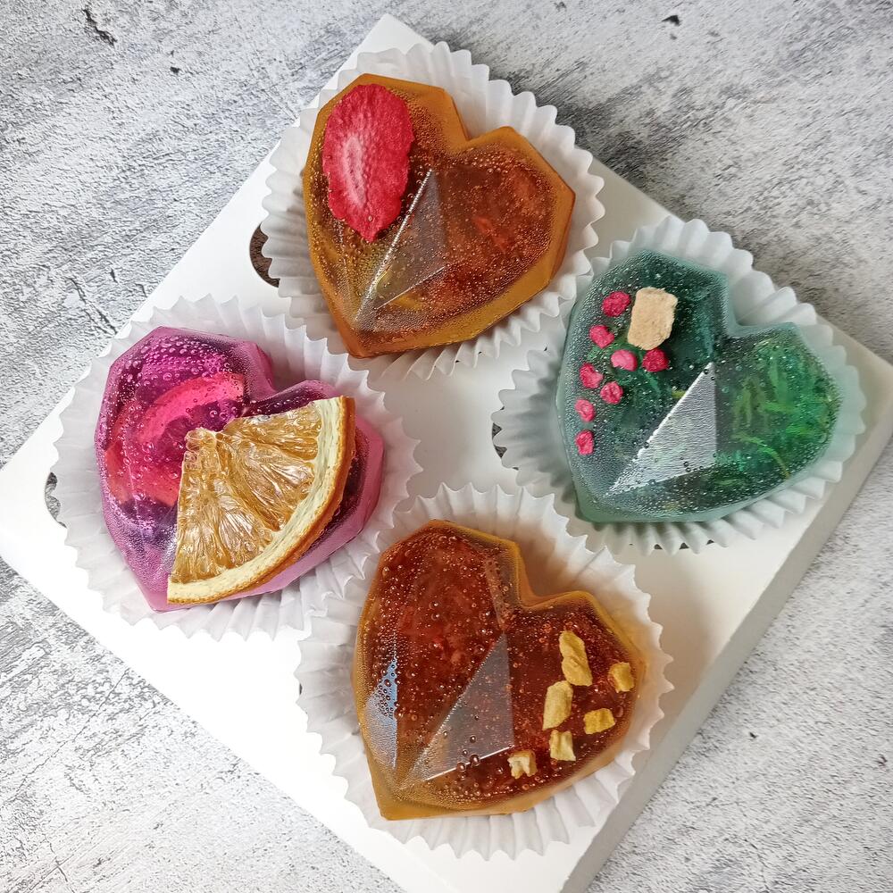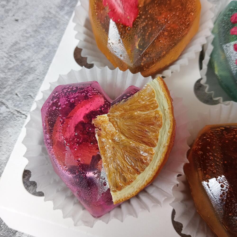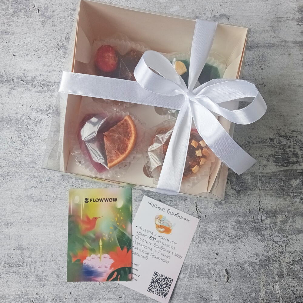 Подарочная коробка - 1 шт. чайная бомбочка апельсин с корицей - 1 шт. чайная бомбочка малина с мятой - 1 шт. чайная бомбочка сочный персик - 1 шт. чайная бомбочка изысканный гранат - 1 шт.