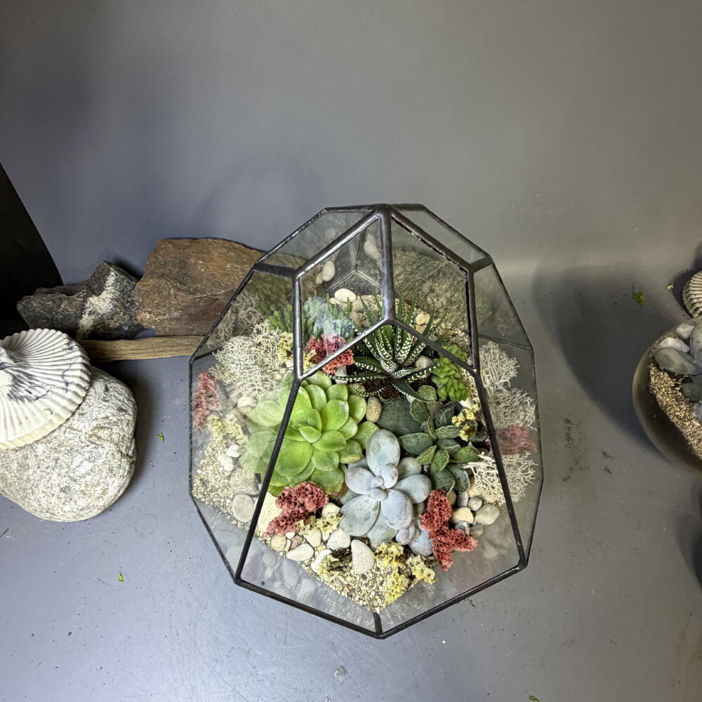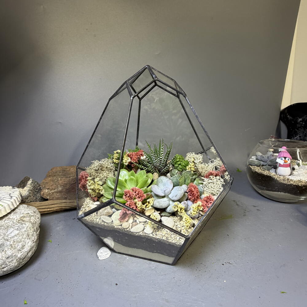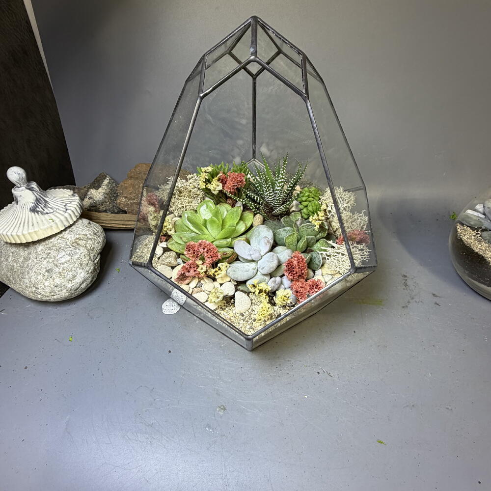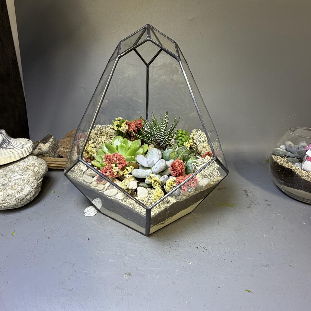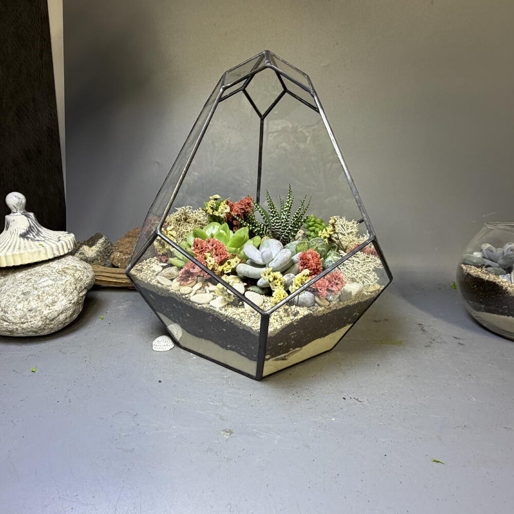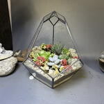 Стильный геометрический флорариум с композицией суккулентов. Отличный подарок и альтернатива букету цветов