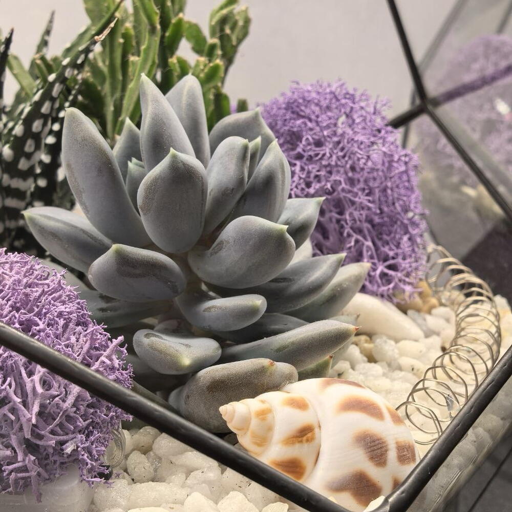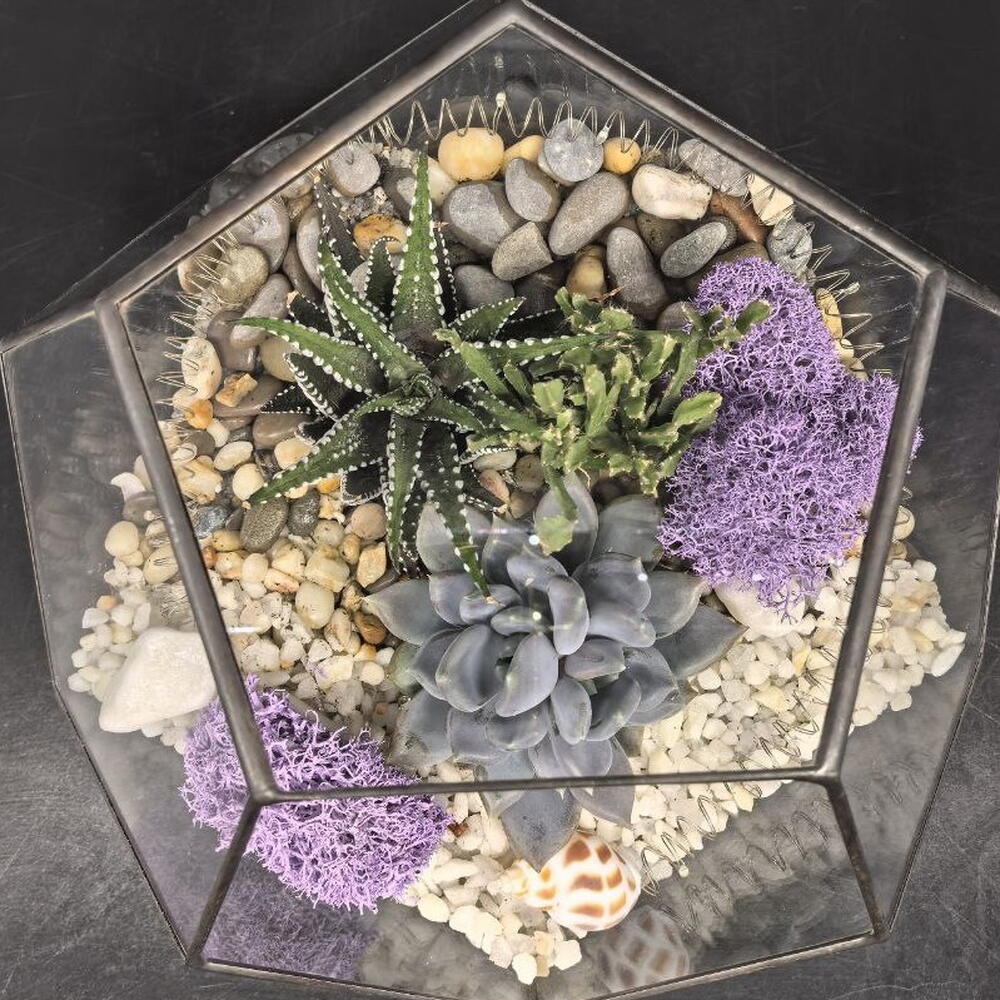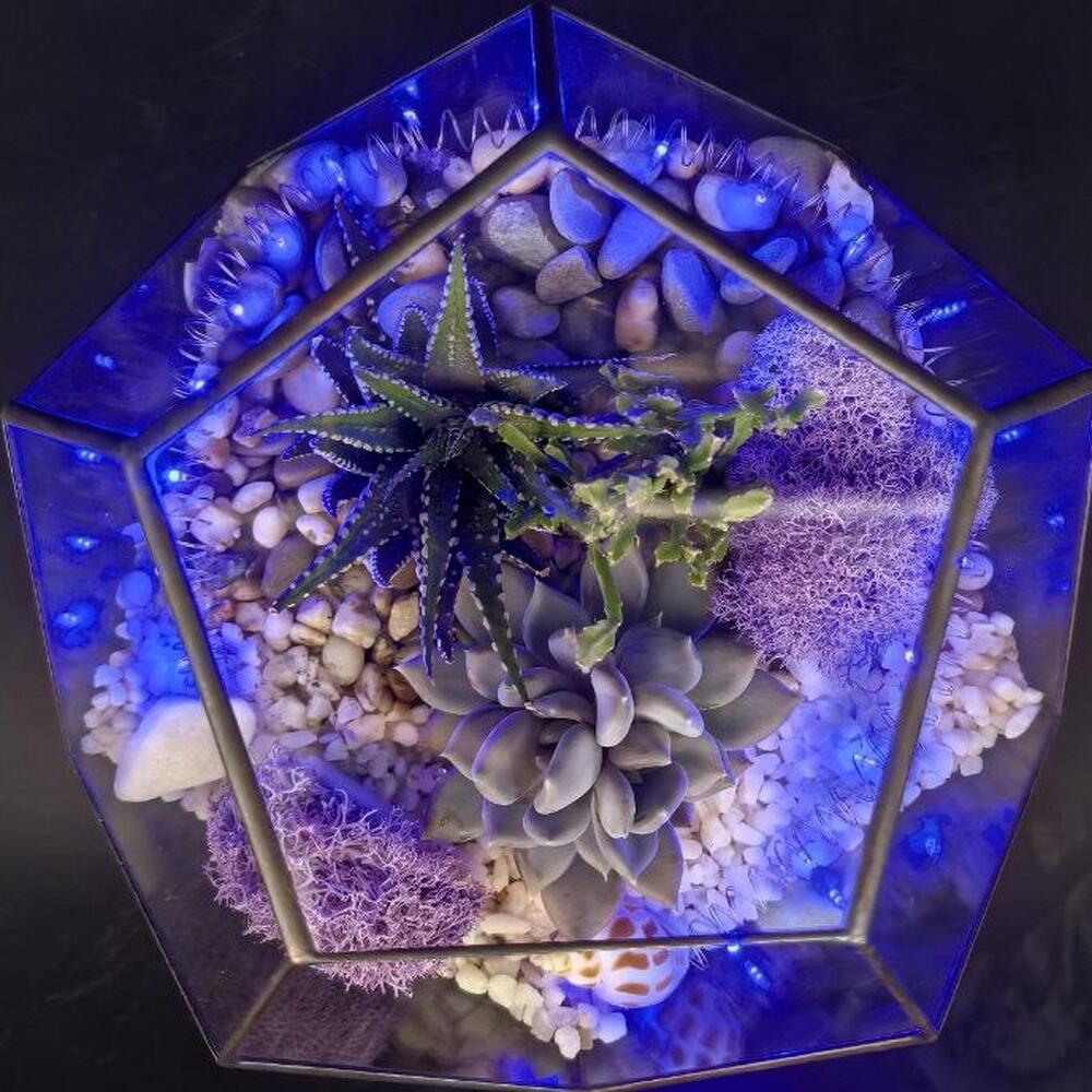 Флорариум с гирляндой и суккулентами Лавандовое сияние р-р L 20120L