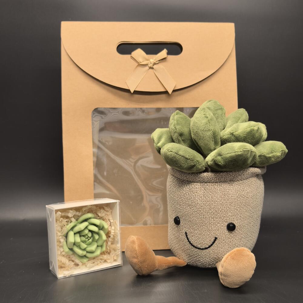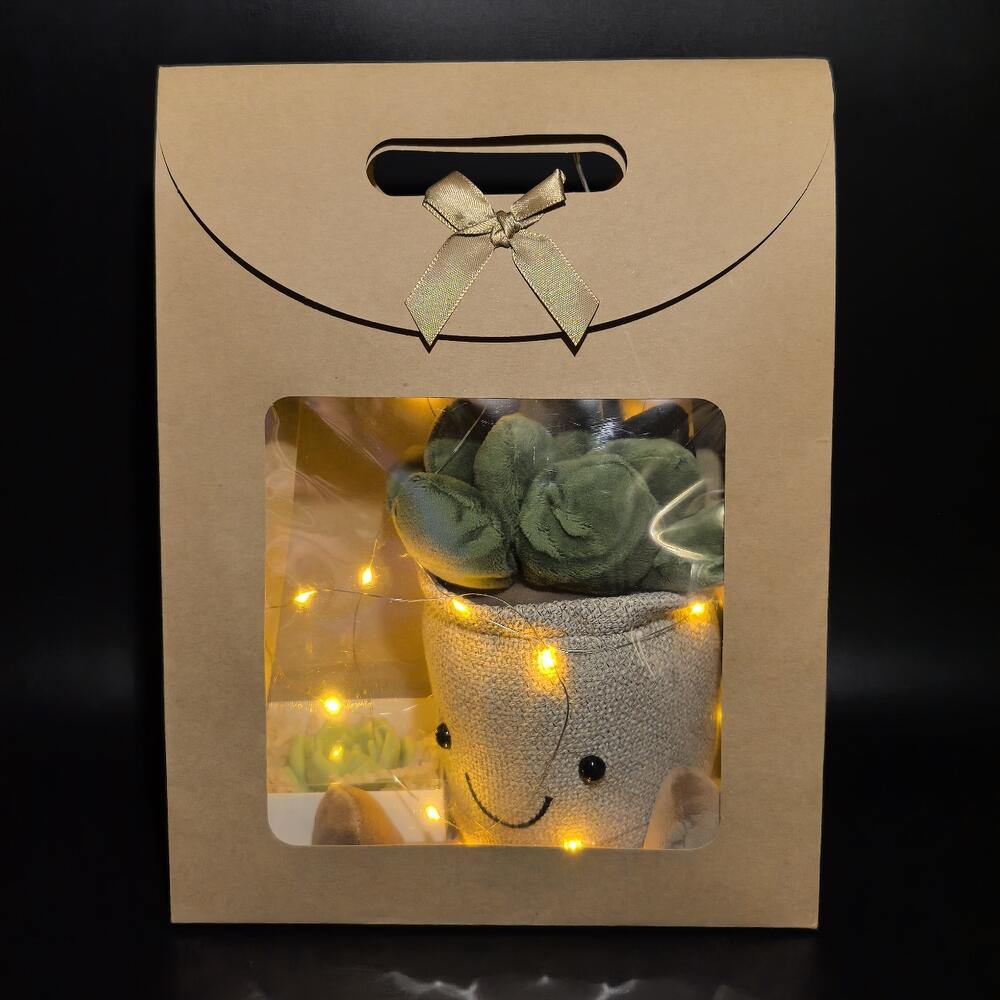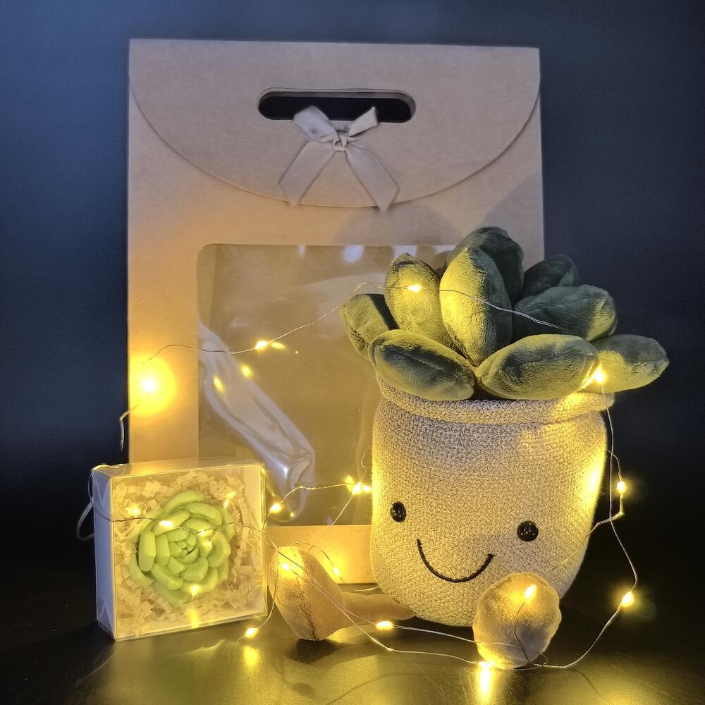 Набор подарочный Игрушка "Суккулент" и шоколад-суккулент в подарочном пакете с гирляндой