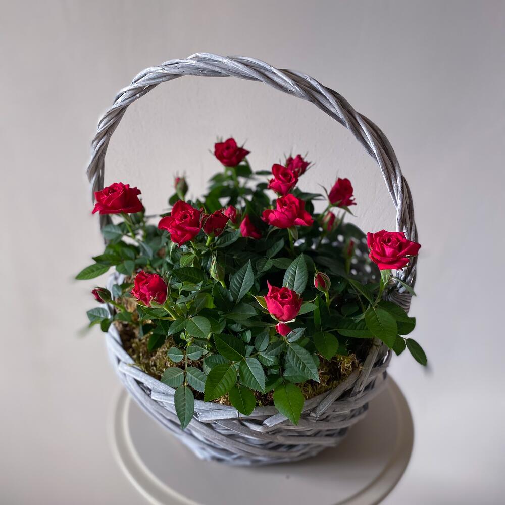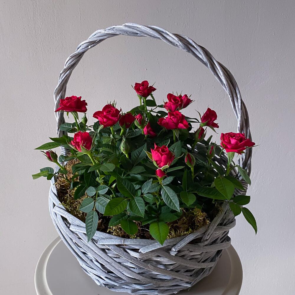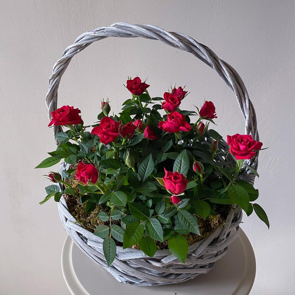 Корзина с горшечными розами