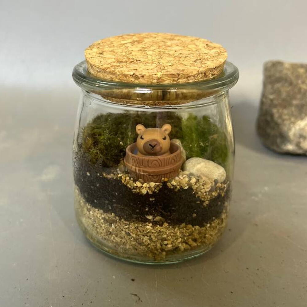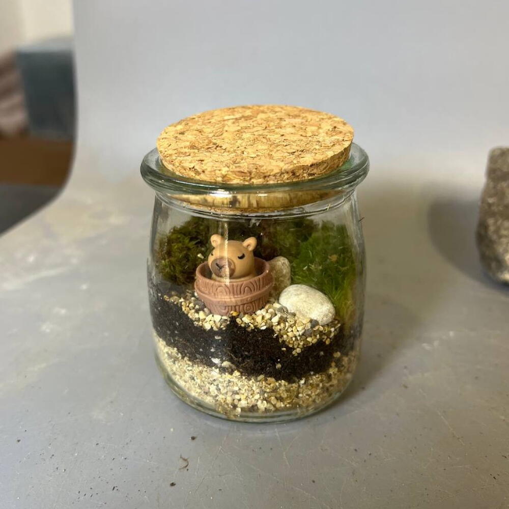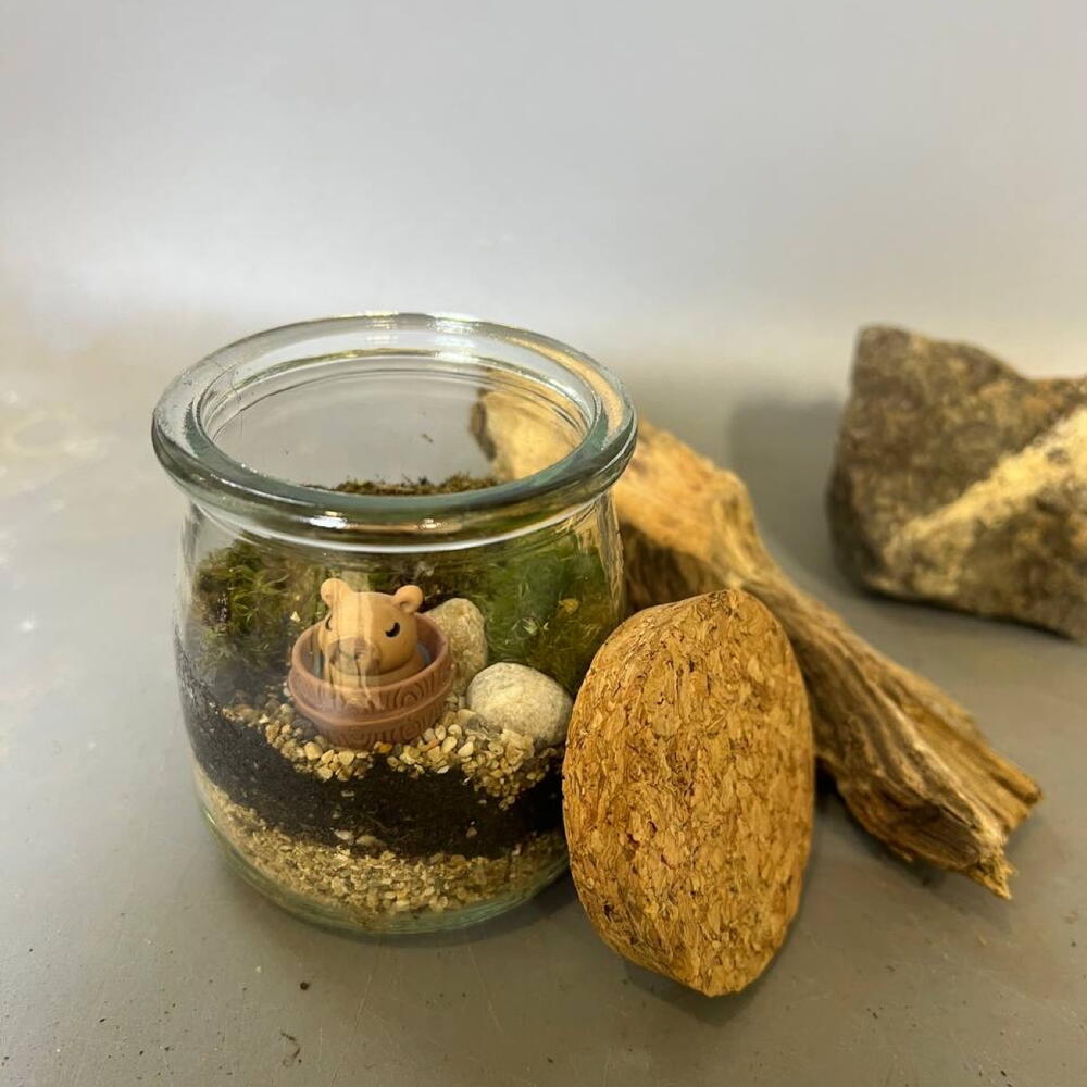 Небольшая экосистема с живым мхом и капибарой