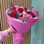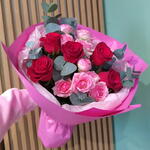 Роза кустовая - 2 шт. Упаковка дизайнерская - 1 шт. Эвкалипт Микс - 3 шт. роза красная кения 40 см - 5 шт.