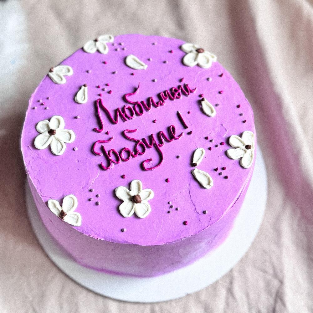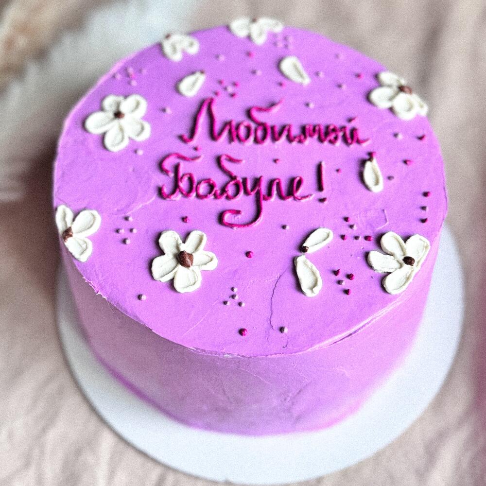 Мини Торт 1 кг с цветами «любимой бабуле» для бабушки или мамы