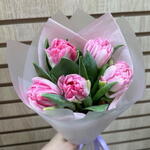 Тюльпан пионовидный, бюджетный подарок, розовый тюльпан, оригинальный подарок коллеге, сестре, дочке, маленький букет, 8 марта