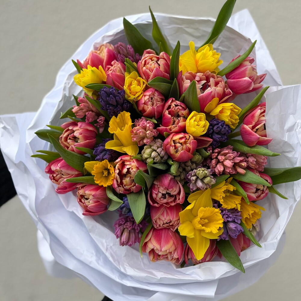 Гиацинт - 11 шт. Нарцисс - 13 шт. Тюльпан Пионовидный - 19 шт. Упаковка дизайнерская - 1 шт.
