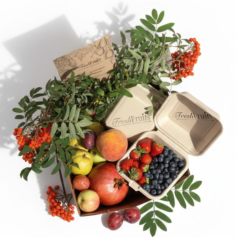 Идеальный подарок, который говорит о ваших чувствах красноречивее любых слов. Наслаждение в каждой детали: 400 г сочной клубники, 400 г ароматной голубики, 600 г медовой хурмы, 600 г хрустящих яблок, 600 г нежной груши «Аббат», 500 г сладкого красного винограда, 600 г спелых слив и целый гранат — искрящаяся симфония вкусов в идеальном наборе. Любой компонент можно заменить, создав уникальный сюрприз!