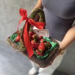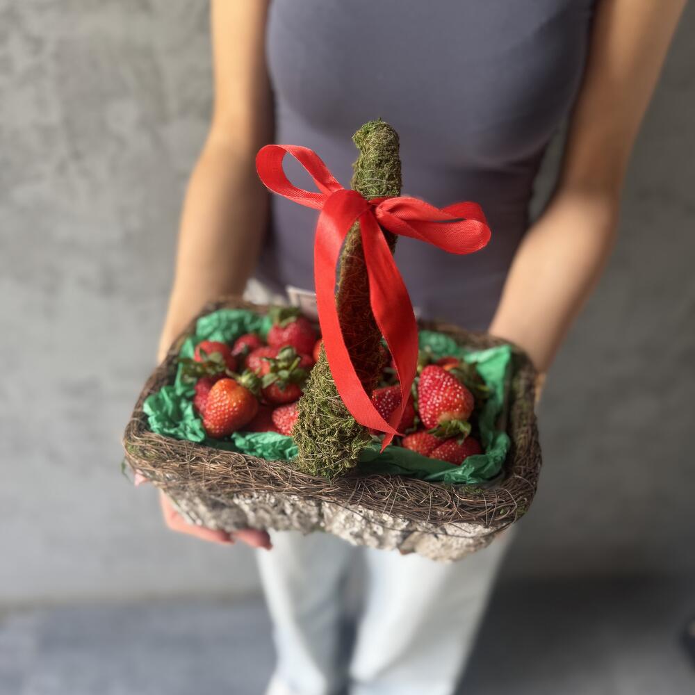 Клубника - 800 гр. Тишью - 1 шт. Корзина плетеная - 1 шт.