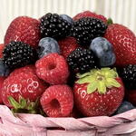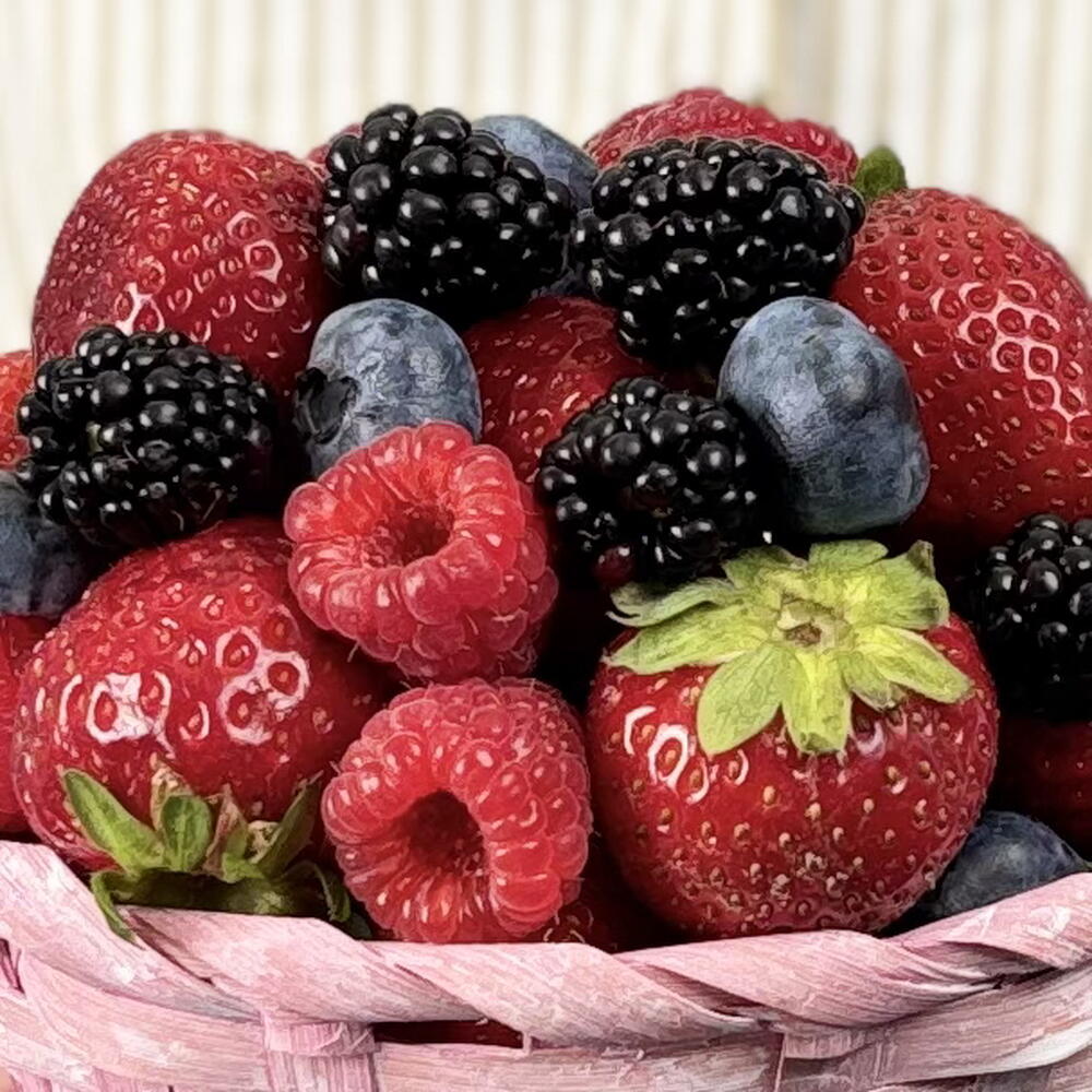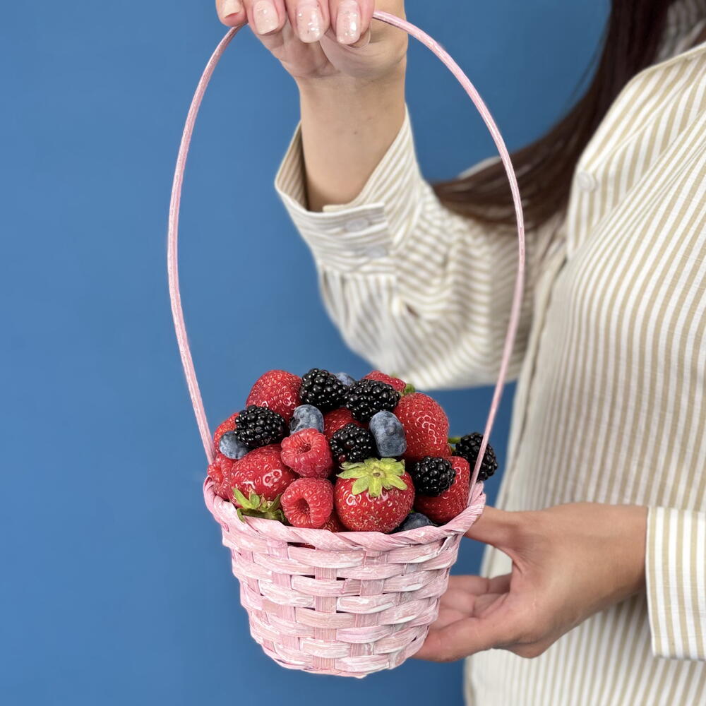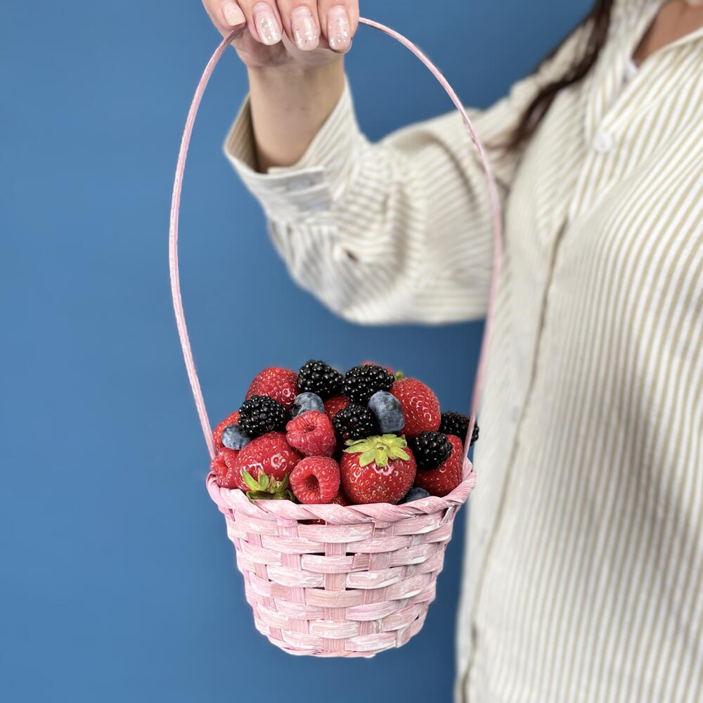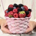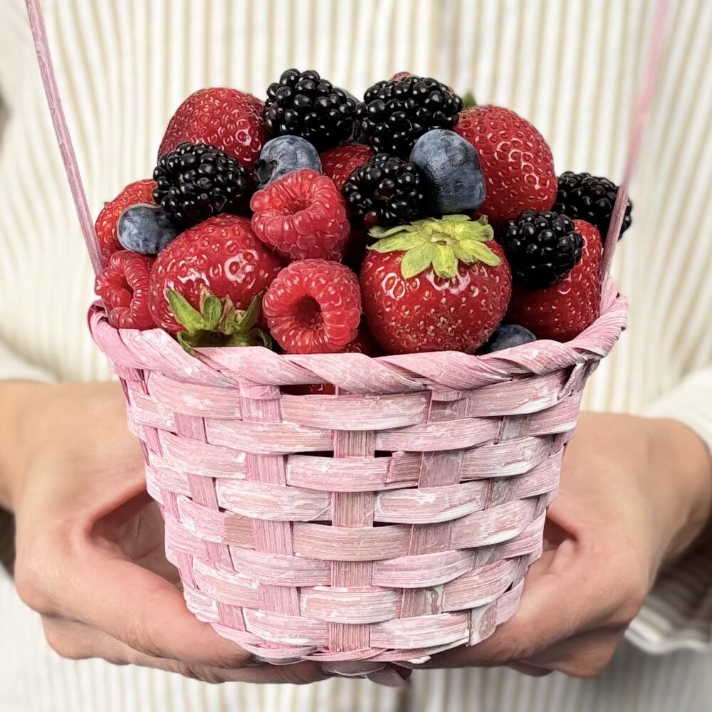 Клубника - 700 гр. Малина - 25 гр. Корзина плетеная - 1 шт. Ежевика - 50 гр. Голубика - 50 гр.