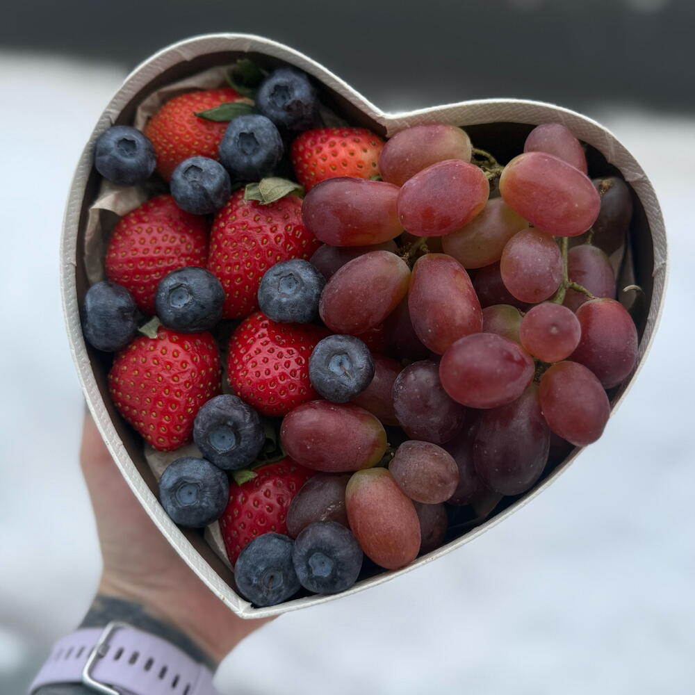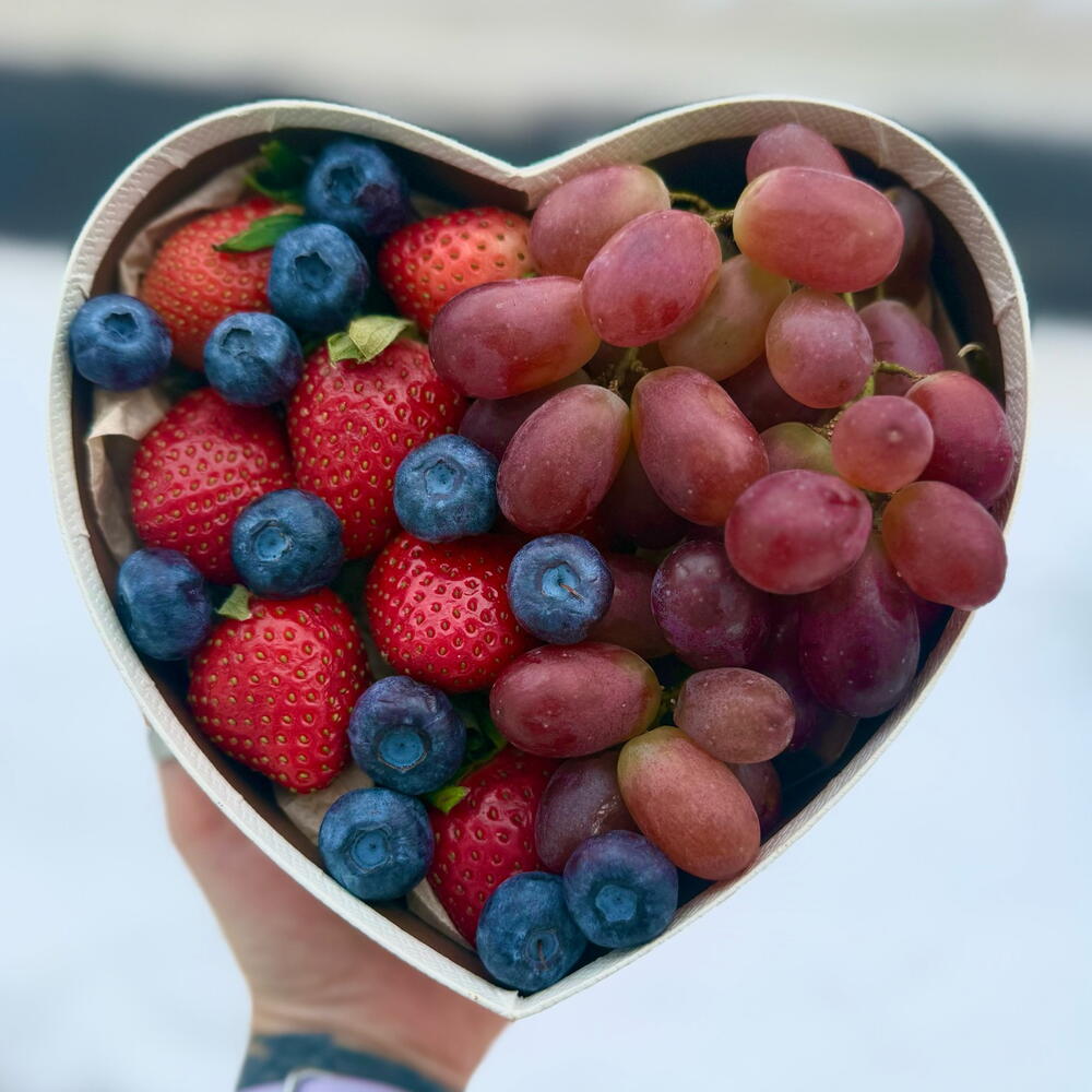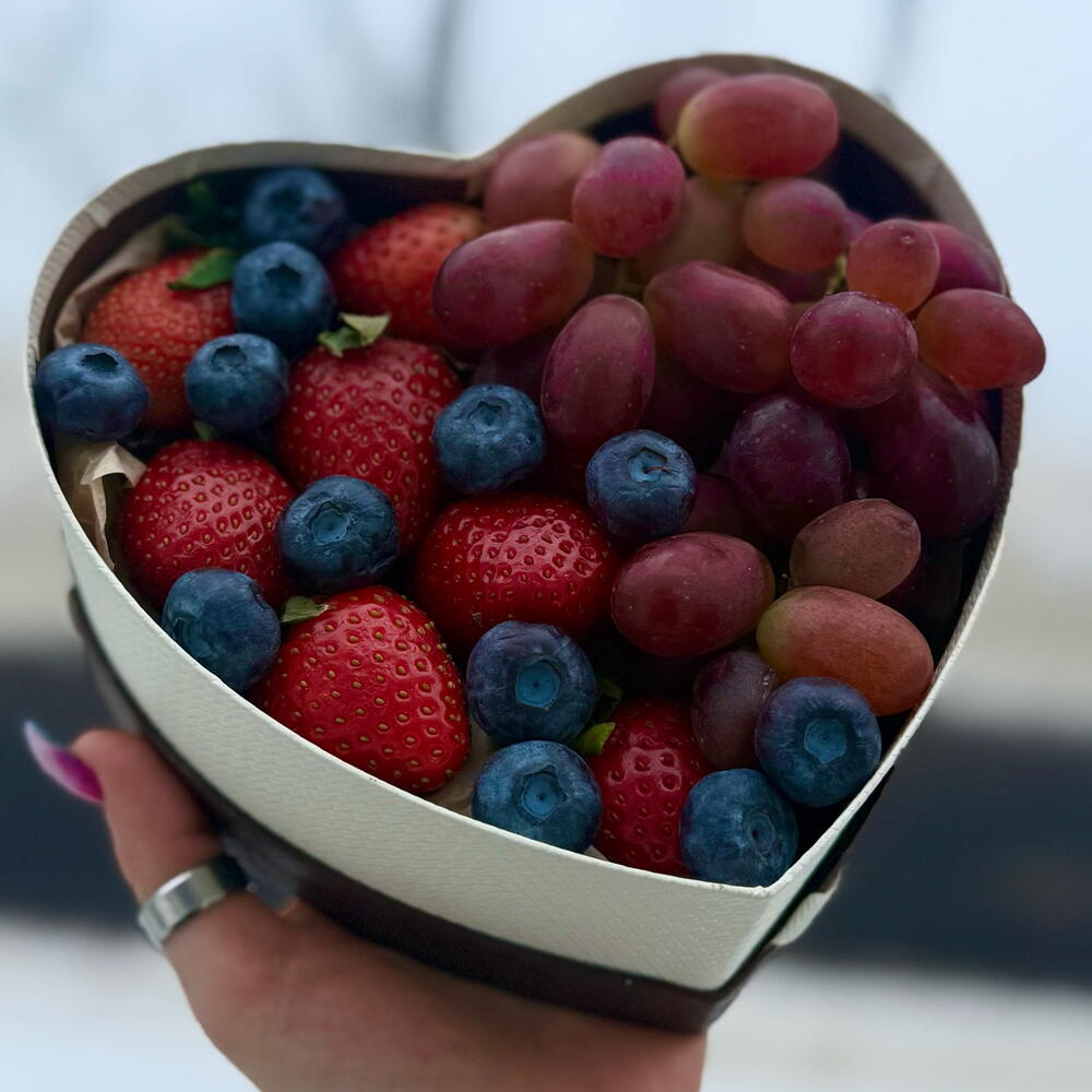 Голубика - 25 гр. Виноград гроздь - 200 гр. клубника свежая - 250 гр.