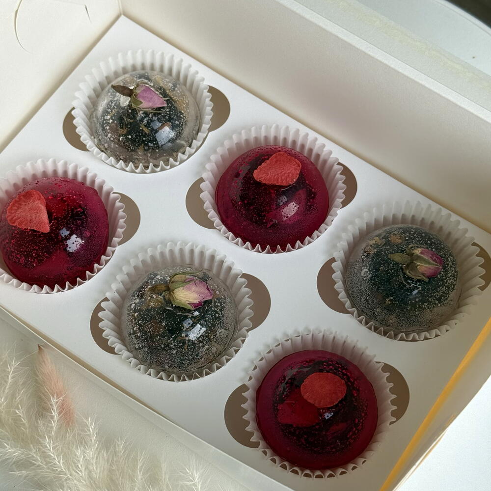 Чайная бомбочка из изомальта — ароматное волшебство в чашке 🍵 Подарите себе момент уюта с чайной бомбочкой из изомальта! Когда вы опускаете прозрачный шар в горячую воду, он растворяется, раскрывая ароматный чай и превращая обычное чаепитие в красивый и вкусный ритуал. Бомбочка рассчитана на чайник 900 мл. В наборе — 2 вида чая: 🌿 Зелёный чай с клубникой и жасмином — нежный, освежающий, с легкой цветочно-ягодной нотой (розовая бомбочка 3 шт). 🥭 Чёрный чай с манго и маракуйей — насыщенный и экзотический, с тропической сладостью и ярким ароматом (прозрачная бомбочка 3 шт). Изомальт делает бомбочку кристально прозрачной и безопасной для здоровья — без сахара, но с лёгкой сладостью и красивым блеском. К каждой бомбочке прилагается инструкция‼️ ❤️ Как приготовить: 1. Подготовьте чайник. Выберите свой любимый — прозрачный стеклянный, чтобы не пропустить ни секунды волшебства. 2. Вода — источник тепла и гармонии. Нагрейте её до 85–90 °C. Пусть она будет горячей, но не кипящей — так вкус и аромат раскроются мягко и полно. 3. Опустите бомбочку в чайник. PS. Для вау эффекта советую перед завариванием поместить бомбочку в морозильную камеру на 5-10 мин. При соприкосновении с водой чайная сфера разобьется как стекло. Дайте настояться 3–5 минут. 4. Вкус момента. Разлейте напиток в чашки, вдохните аромат и позвольте себе замедлиться. 💖 Каждая чайная бомбочка — это маленькое чудо, созданное, чтобы подарить вам мгновение красоты и спокойствия