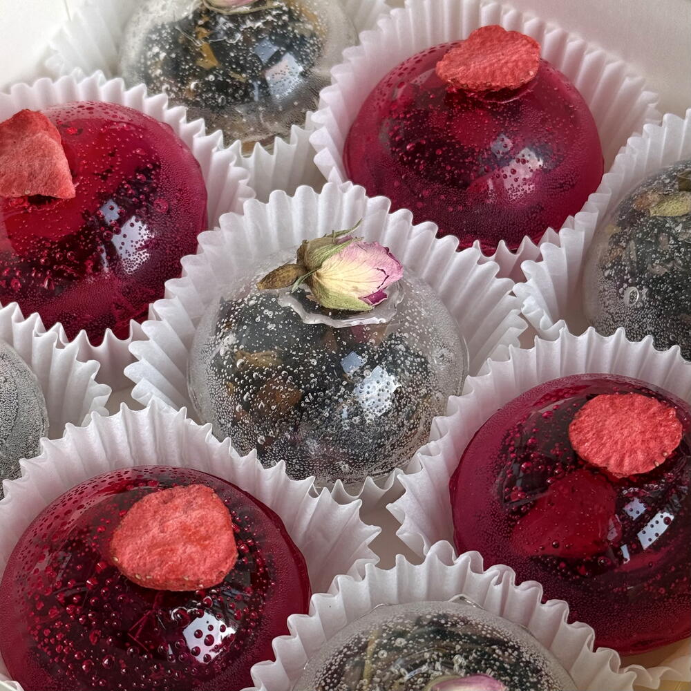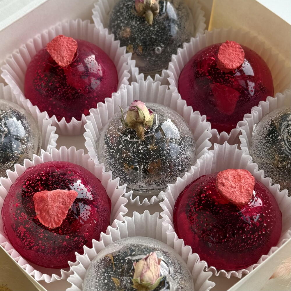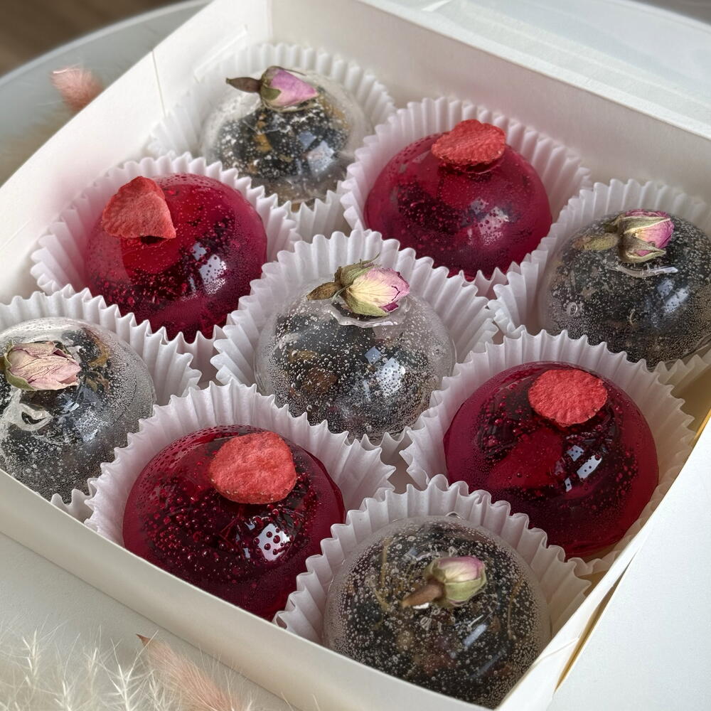 Чайная бомбочка из изомальта — ароматное волшебство в чашке 🍵 Подарите себе момент уюта с чайной бомбочкой из изомальта! Когда вы опускаете прозрачный шар в горячую воду, он растворяется, раскрывая ароматный чай и превращая обычное чаепитие в красивый и вкусный ритуал. Бомбочка рассчитана на чайник 900 мл. В наборе — 2 вида чая: 🌿 Зелёный чай с клубникой и жасмином — нежный, освежающий, с легкой цветочно-ягодной нотой (розовая бомбочка 4 шт). 🥭 Чёрный чай с манго и маракуйей — насыщенный и экзотический, с тропической сладостью и ярким ароматом (прозрачная бомбочка 5 шт). Изомальт делает бомбочку кристально прозрачной и безопасной для здоровья — без сахара, но с лёгкой сладостью и красивым блеском. К каждой бомбочке прилагается инструкция‼️ ❤️ Как приготовить: 1. Подготовьте чайник. Выберите свой любимый — прозрачный стеклянный, чтобы не пропустить ни секунды волшебства. 2. Вода — источник тепла и гармонии. Нагрейте её до 85–90 °C. Пусть она будет горячей, но не кипящей — так вкус и аромат раскроются мягко и полно. 3. Опустите бомбочку в чайник. PS. Для вау эффекта советую перед завариванием поместить бомбочку в морозильную камеру на 5-10 мин. При соприкосновении с водой чайная сфера разобьется как стекло. Дайте настояться 3–5 минут. 4. Вкус момента. Разлейте напиток в чашки, вдохните аромат и позвольте себе замедлиться. 💖 Каждая чайная бомбочка — это маленькое чудо, созданное, чтобы подарить вам мгновение красоты и спокойствия