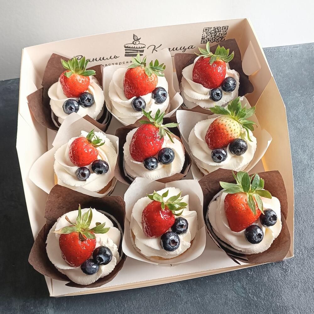 Капкейки со свежими ягодами, 9 штук, в подарок