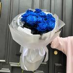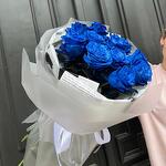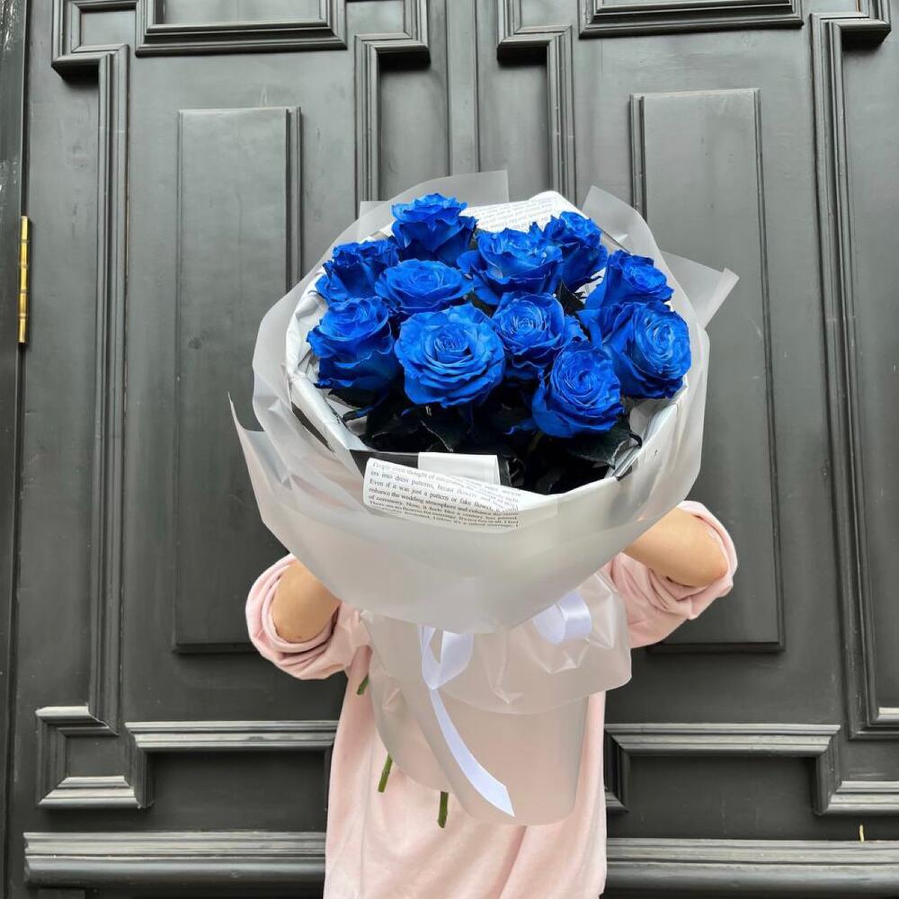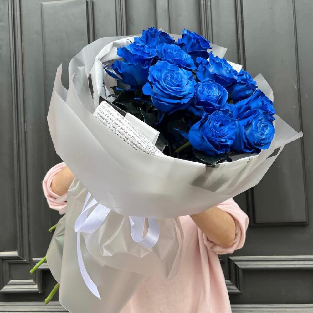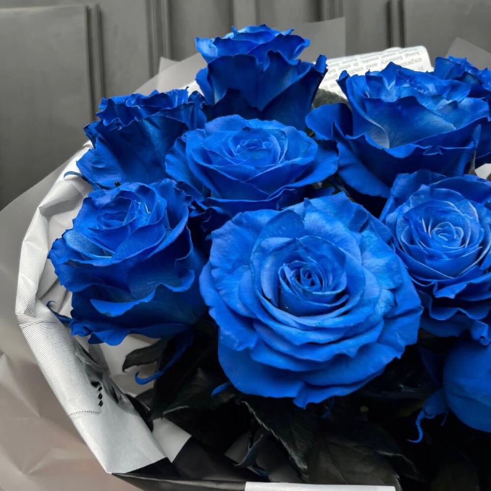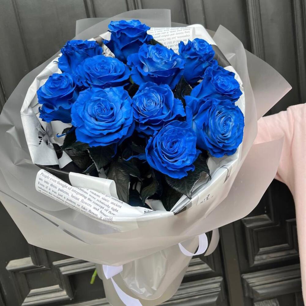 Синие розы 11 шт в дизайнерском оформлении. Арт.10567