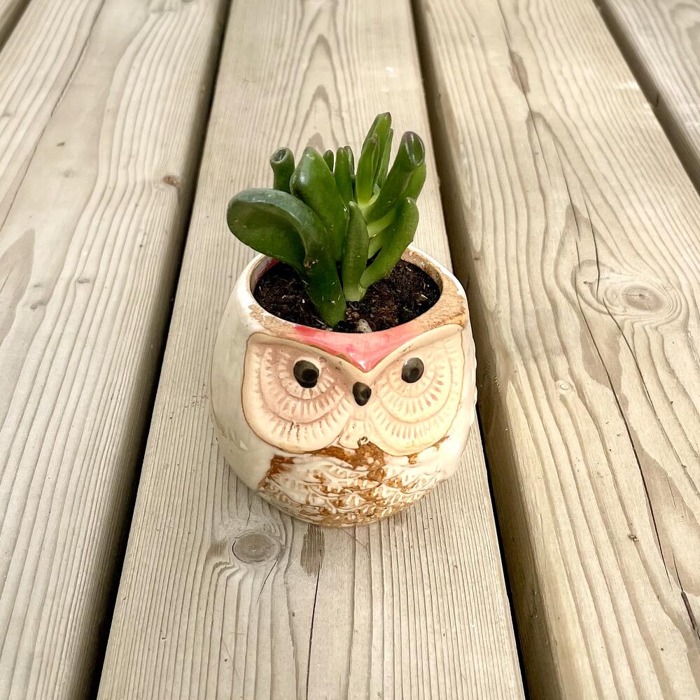 Комнатнное растений суккулент крассула голум в керамическом горшке Сова