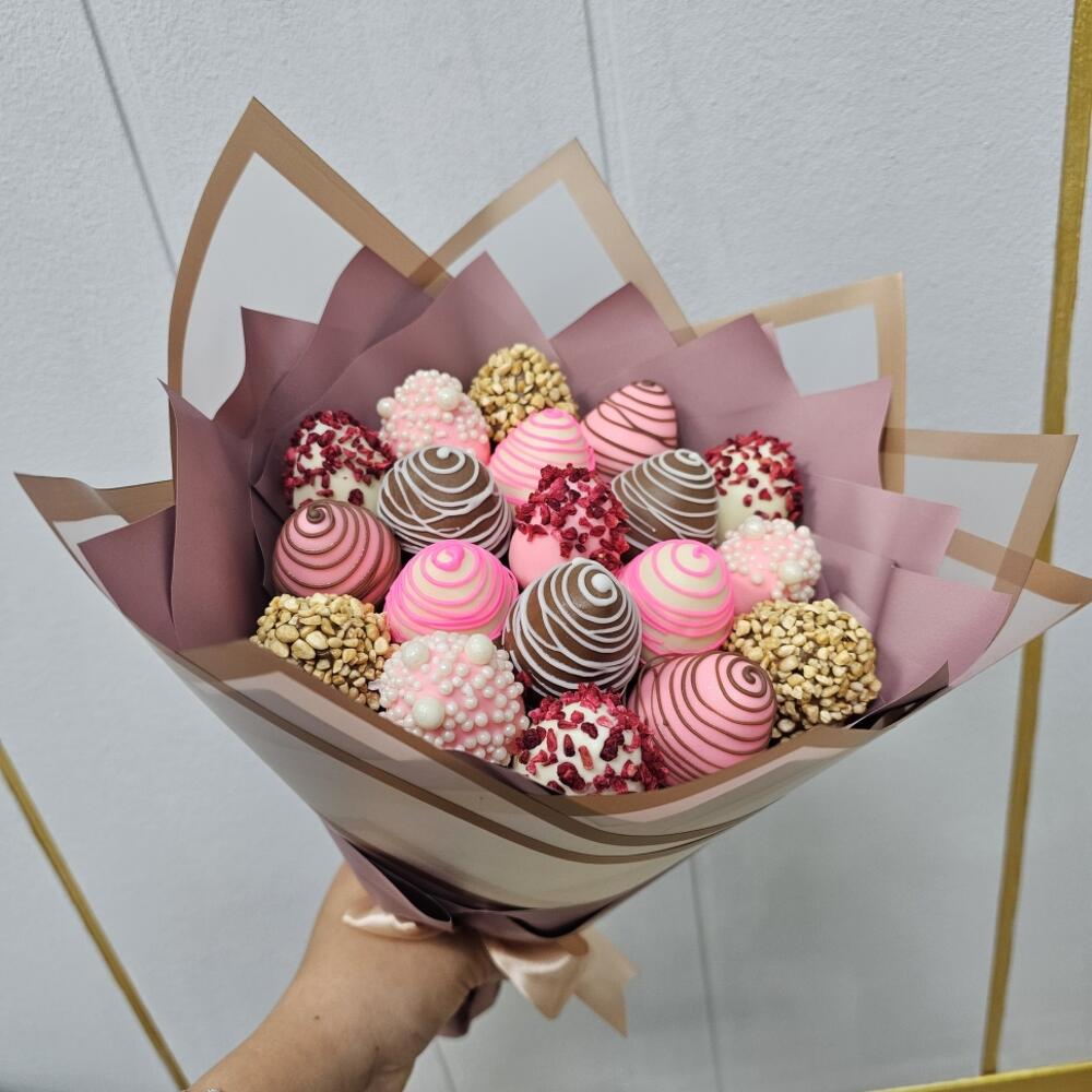 Подарите себе или близким моменты радости с букетом из 19 ягод клубники в шоколаде — это изысканное лакомство для тех, кто ценит качество и утончённость. Идеальный подарок для любого возраста!