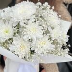 Этот букет из хризантем и гипсофилы подарит радость и тепло. Повод: Идеален для праздников, юбилеев и свадеб! А также идеален для подарка без повода. Данный букет подойдет для девушки, супруги, мамы, дочери, тещи, учителю, выпускной. На праздники: Новый год, День Матери, День влюбленных, 8 Марта. Инструкция по уходу композиции в губке : -поставьте композицию в прохладном месте, подальше от прямых солнечных лучей, сквозняков, обогревательных приборов, фруктов и овощей. -через день-два подлейте немного воды между цветами композиции. Повторяйте каждый или через день. -не вынимайте цветы из флористической пены, иначе они перестанут впитывать из нее влагу.