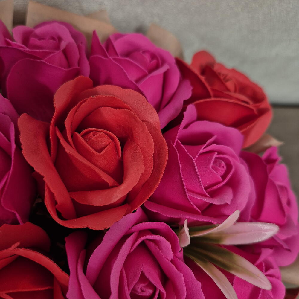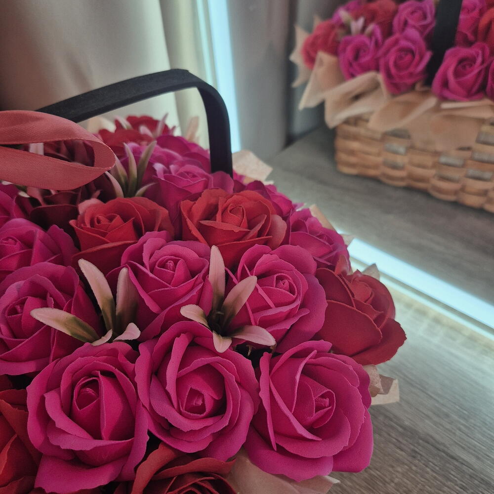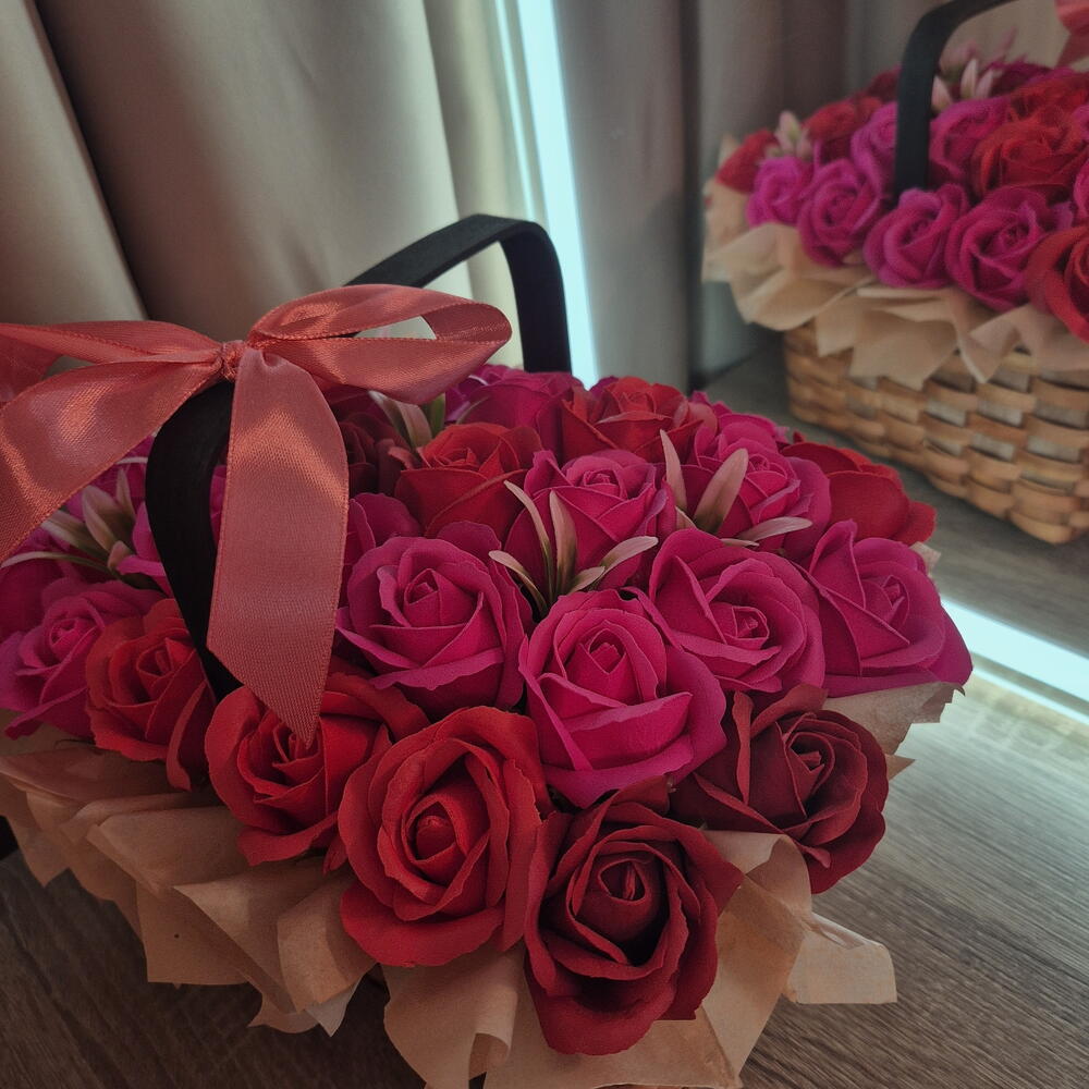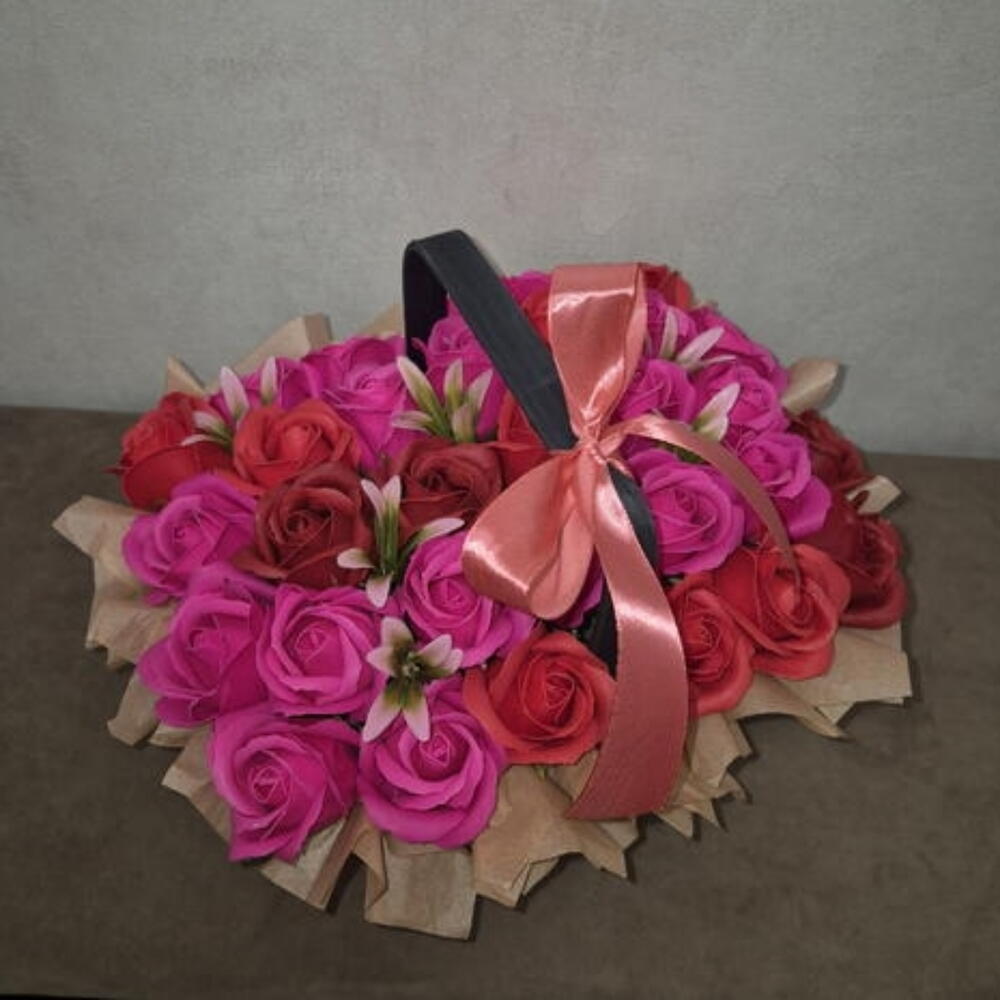 Корзинка 31 роза из мыльной пены