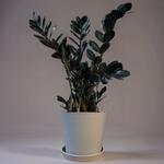 Замиокулькас Рейвен - Кука; в светло-сером круглом ЭКО-горшке