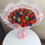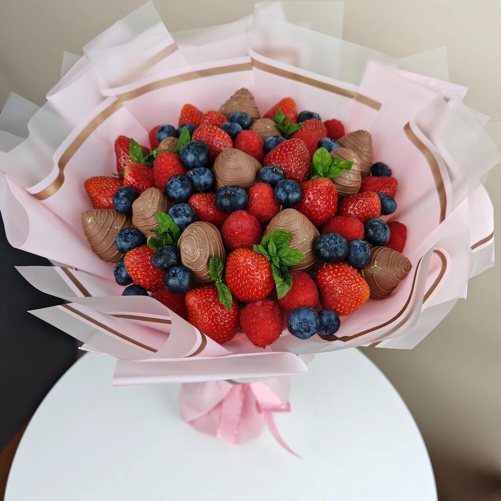 Когда мы дарим подарок близкому человеку, мы хотим, чтобы он был особенным, запоминающимся и вызывающим улыбку на лице получателя. Если вы хотите удивить своих близких и предложить необычный подарок обратите внимание на этот букет. Изысканный и запоминающийся подарок, сочетающий в себе свежесть ягод и роскошь шоколада. Такой букет станет отличной альтернативой традиционным цветам, добавив нотку романтики и сладости в любой праздник или особенный момент. Подойдёт для подарка ко дню рождения, на юбилей, и для подарка без повода для любимой девушки или мамы. В наших букетах, мы используем только свежие отборные ягоды и премиальный бельгийский шоколад callebaut. Рекомендуем насладиться десертом в первые 24 часа после получения, по необходимости хранить в холодильнике не более 2х суток. Все наши букеты, упакованы в прозрачную защитную плёнку.