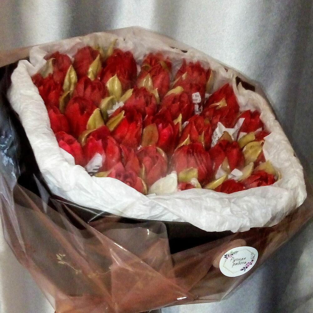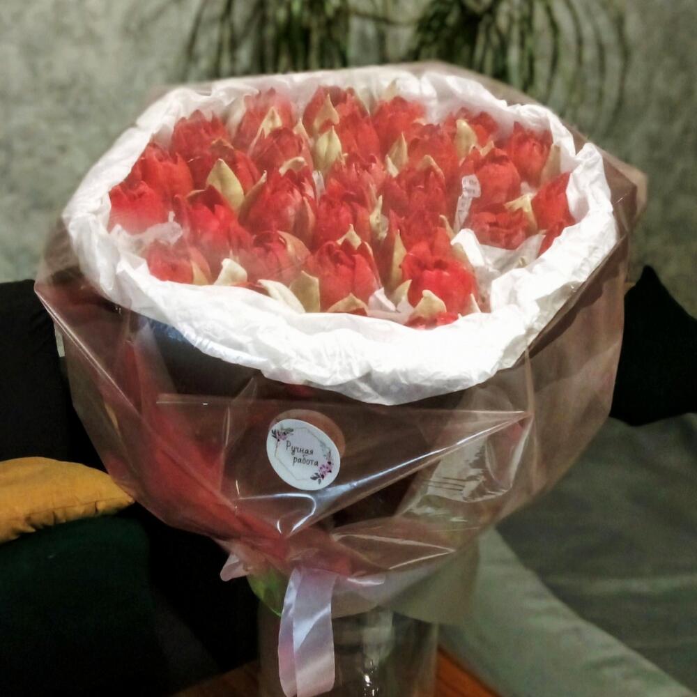 Премиум букет👑 Букет из ярких и вкусных красных тюльпанов Вау эфект обеспечен! 🔥 Букет сверху упакован в прозрачную плёнку Каждый цветочек сделан вручную, поэтому каждый букет получается особенный и не похожий на другие 🌷