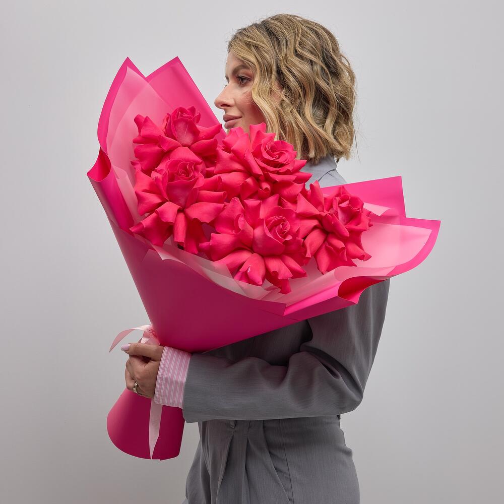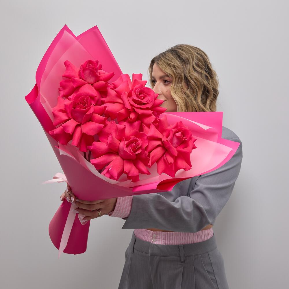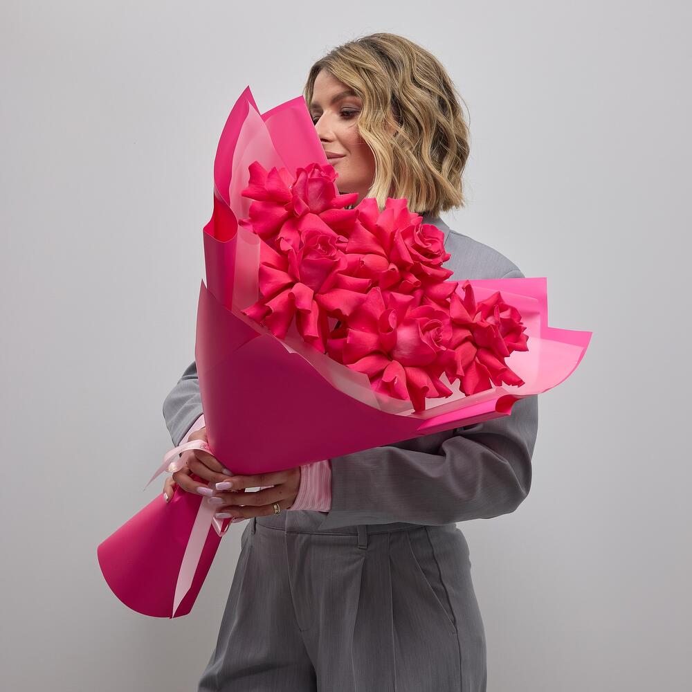 Порадуйте любимого человека очаровательным мини букетом из 5 нежных ярко розовых французских роз. Прекрасный подарок на день рождения, годовщину отношений, юбилей или просто чтобы выразить свои чувства. Ароматные розы символизируют романтику и любовь. Букет станет отличным сюрпризом для второй половинки. Доставим в день заказа по городу Тула. Позвольте розам передать теплые пожелания в этот особенный день! Следуйте этим шагам — и цветы сохранят свежесть как можно дольше. Распакуйте букет — Аккуратно достаньте цветы из транспортировочной коробки. — Снимите водонепроницаемую плёнку со стеблей. Обрежьте стебли — Возьмите острый нож или секатор. — Сделайте косой срез (45°) — чем больше площадь среза, тем лучше цветы пьют воду. — Важно! Подрезайте стебли прямо перед тем, как ставить в вазу. Подготовьте воду — Насыпьте в вазу пакетик подкормки из набора. — Налейте холодную воду до краёв. — Для гортензий и французских роз: вода должна покрывать 75% стеблей. Выберите подходящую ёмкость — Если у вас нет вазы, соответствующей объему букета - используйте ведро или укоротите стебли. — Убедитесь, что цветы свободно помещаются, а вода покрывает стебли. Уберите лишнюю упаковку - Если у вас большой букет, где основная длина цветов находится выше перевязочной ленты, снимите упаковку. - Так цветы получат больше воды и сохранят свежесть дольше. Найдите идеальное место — Поставьте вазу в прохладное место. Идеальная комнатная температура 18-22 градуса — Подальше от батарей, кондиционеров и прямого солнца. Ежедневный уход — Меняйте воду каждый день. — Подрезайте стебли на 1 см при каждой замене воды. — Удаляйте увядшие цветы и листья — они портят воду. Чего избегать — Не ставьте букет рядом с фруктами (яблоки, бананы и т.д.). — Держите подальше от обогревателей и сквозняков. Секрет от флориста Чем короче стебли цветов и чем больше воды в вазе — тем дольше живут цветы! С любовью Flower bar