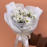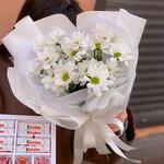 The packaging is designer - 1 pcs Хризантема кустовая ромашковая - 3 pcs Конфеты ручной работы - 8 pcs Киндер шоколад - 8 pcs satin bow - 1 pcs