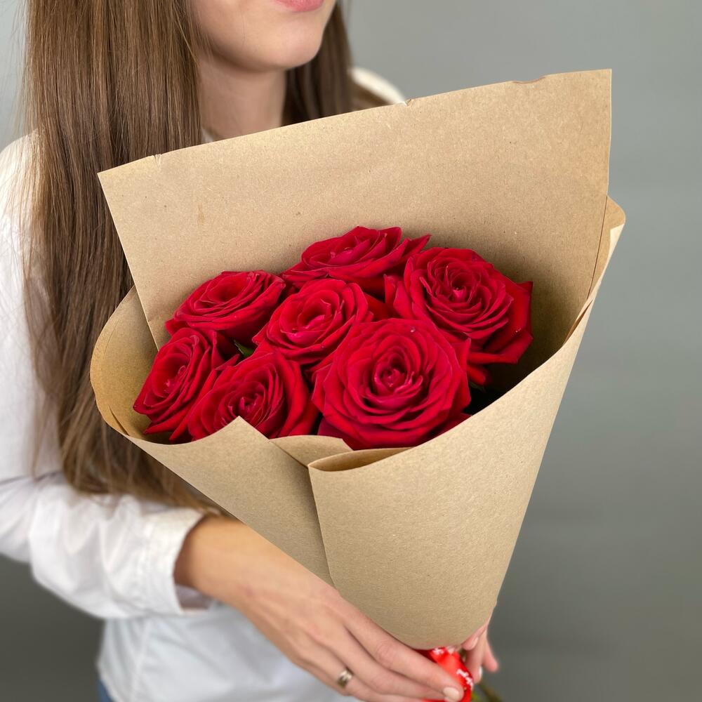Красные розы в крафте